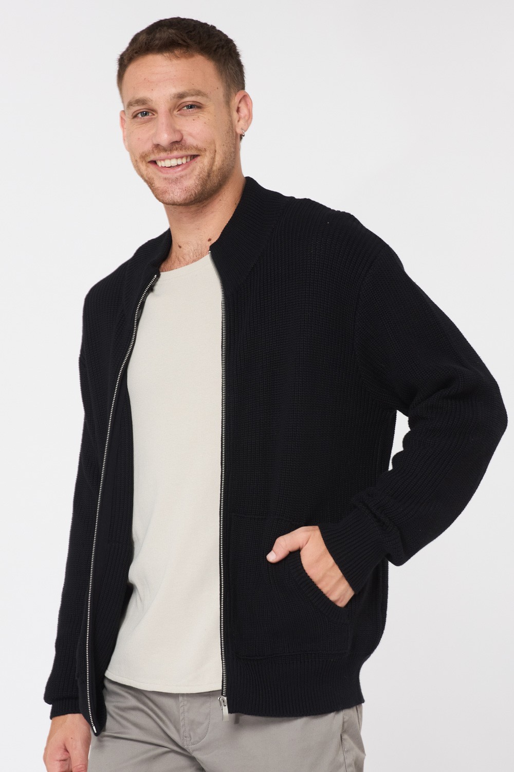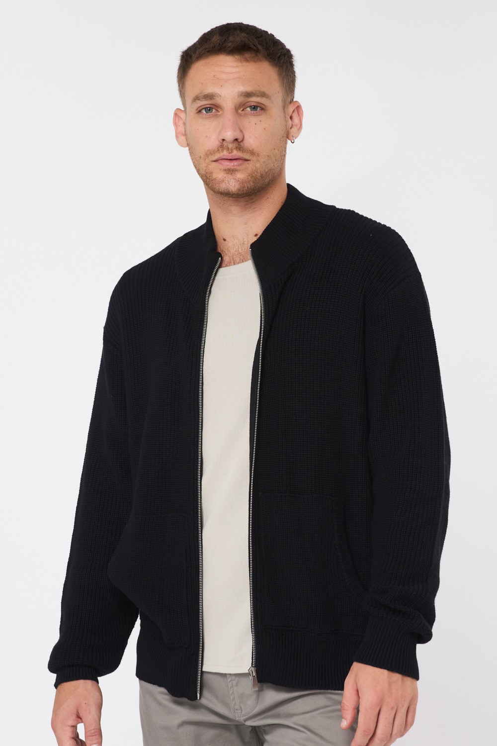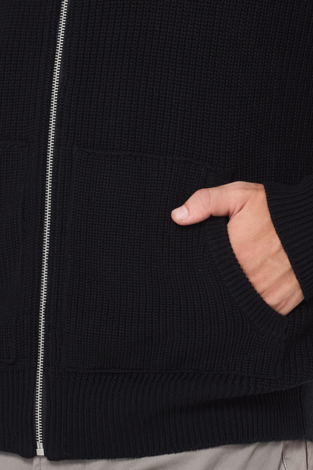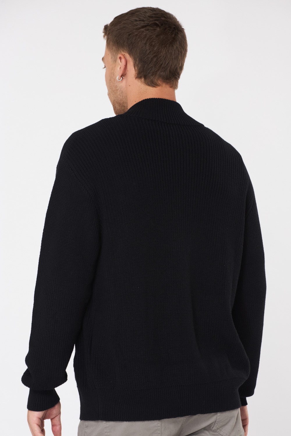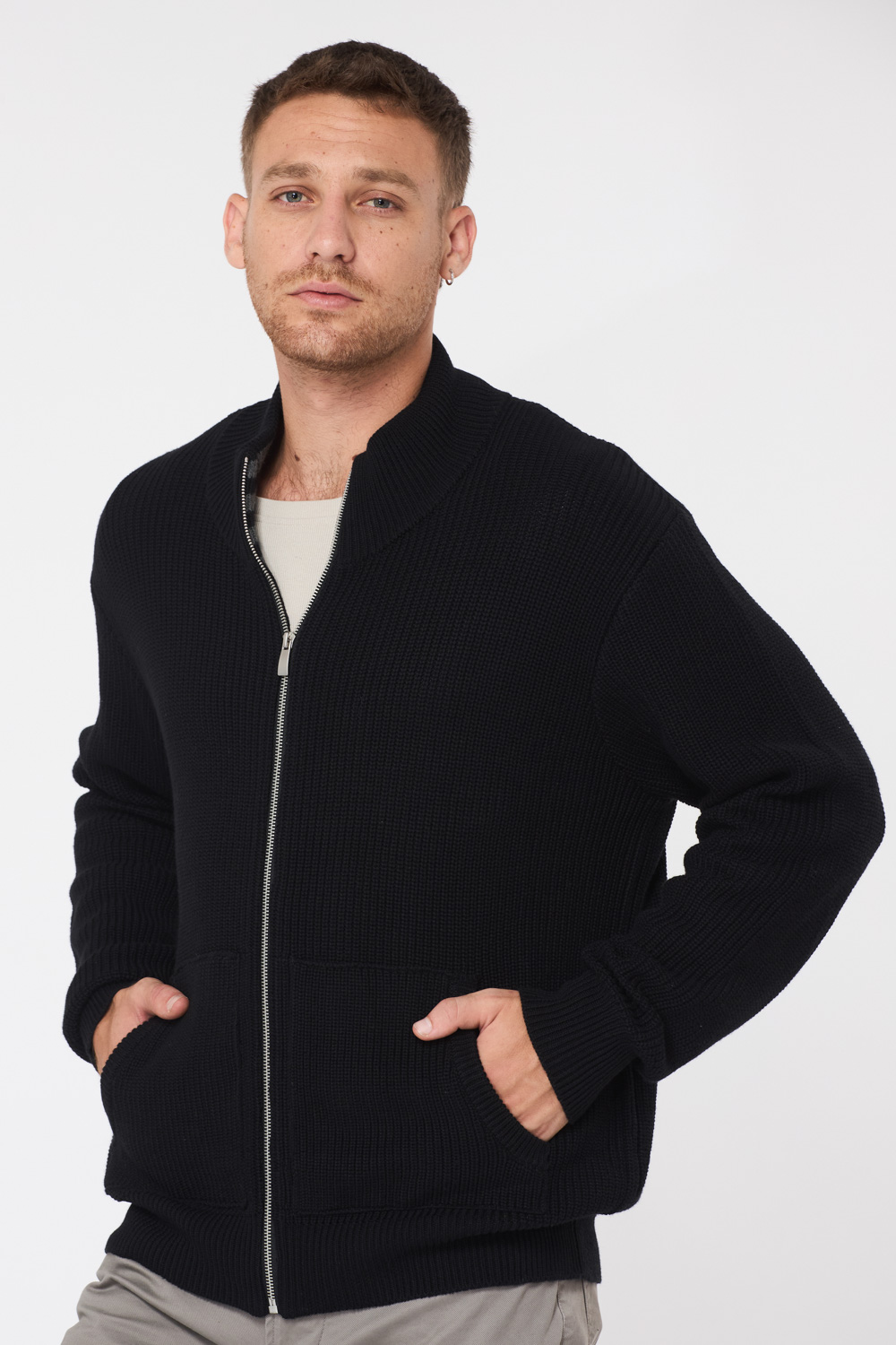 סוודר קרדיגן עבה כיס קנגורו – שחור