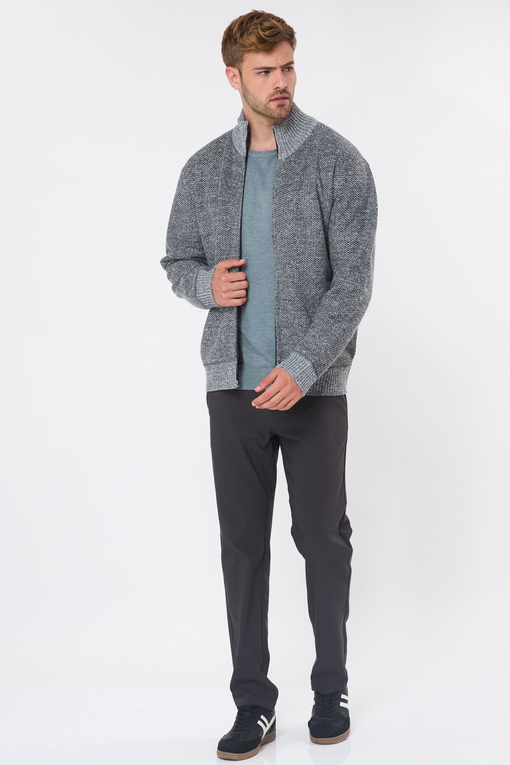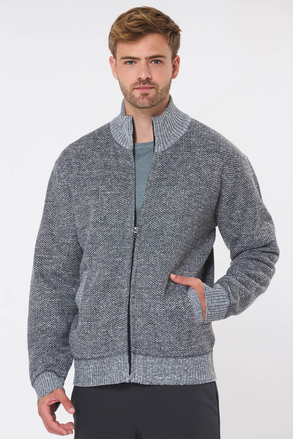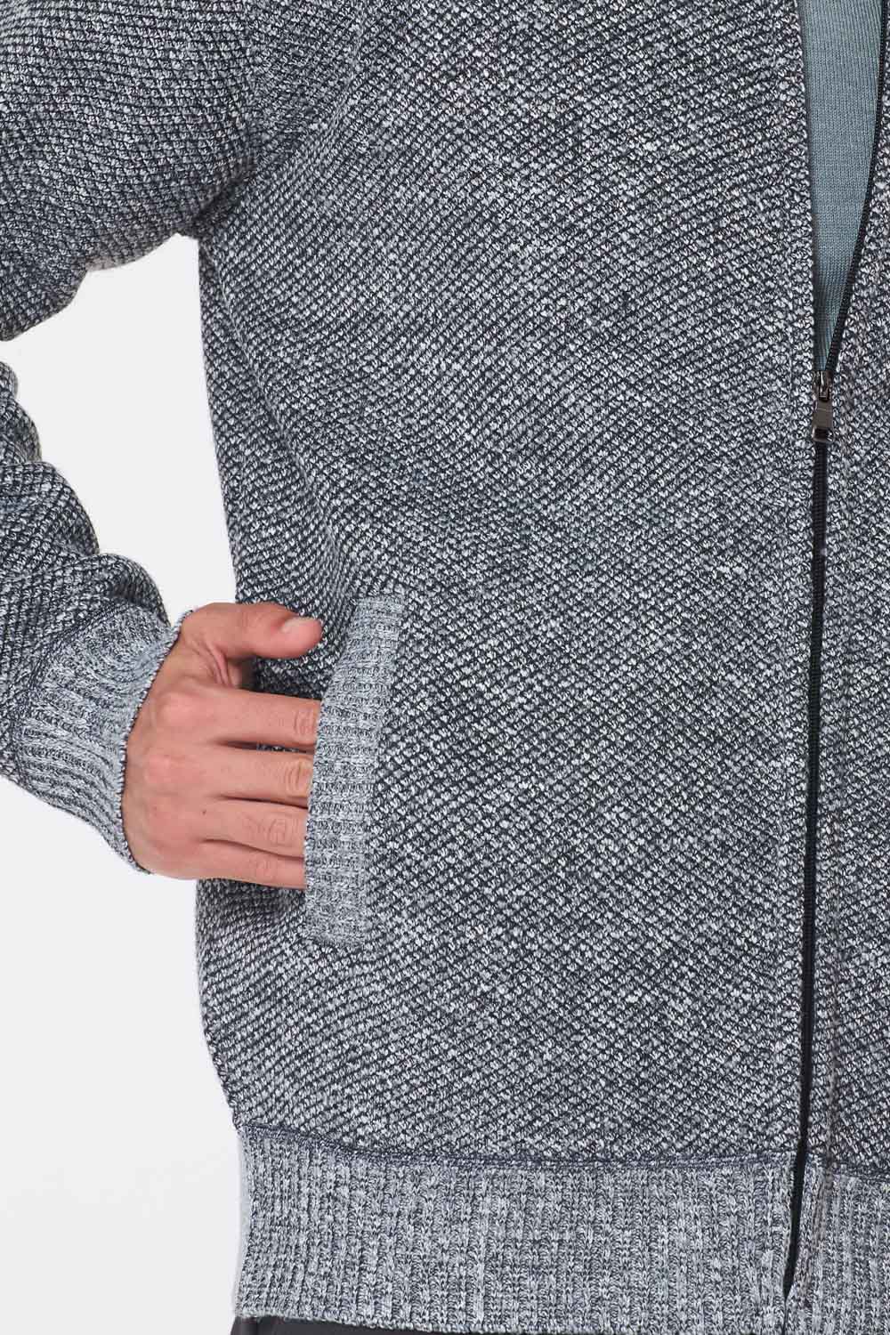סוודר קרדיגן רוכסן בטנת פרווה – אפור כהה
