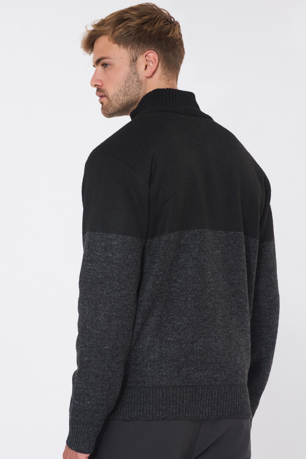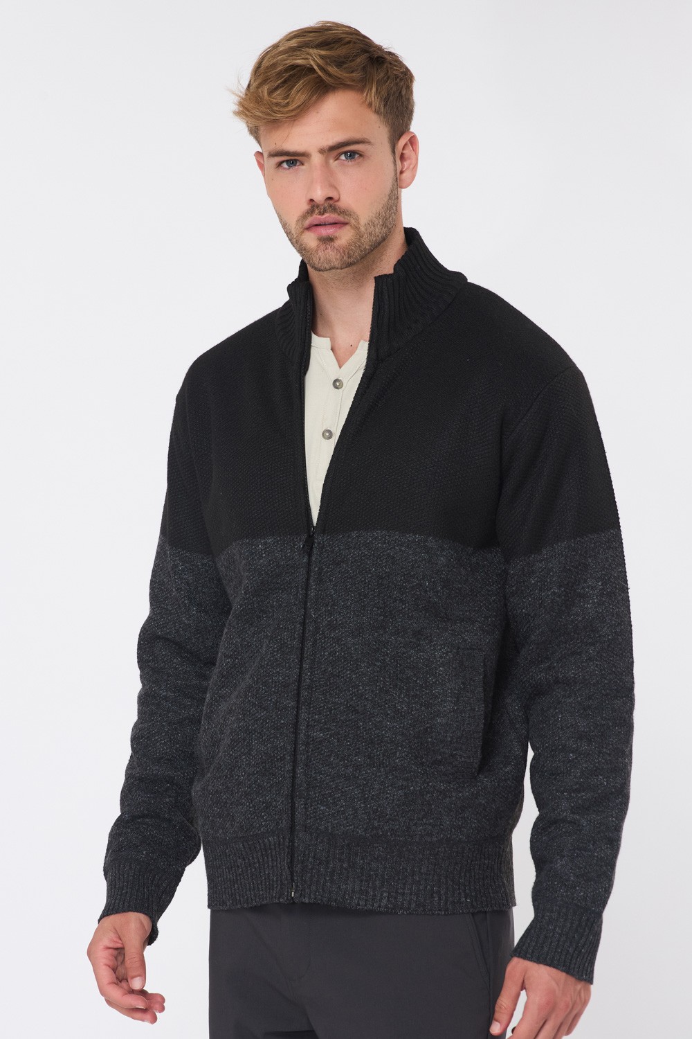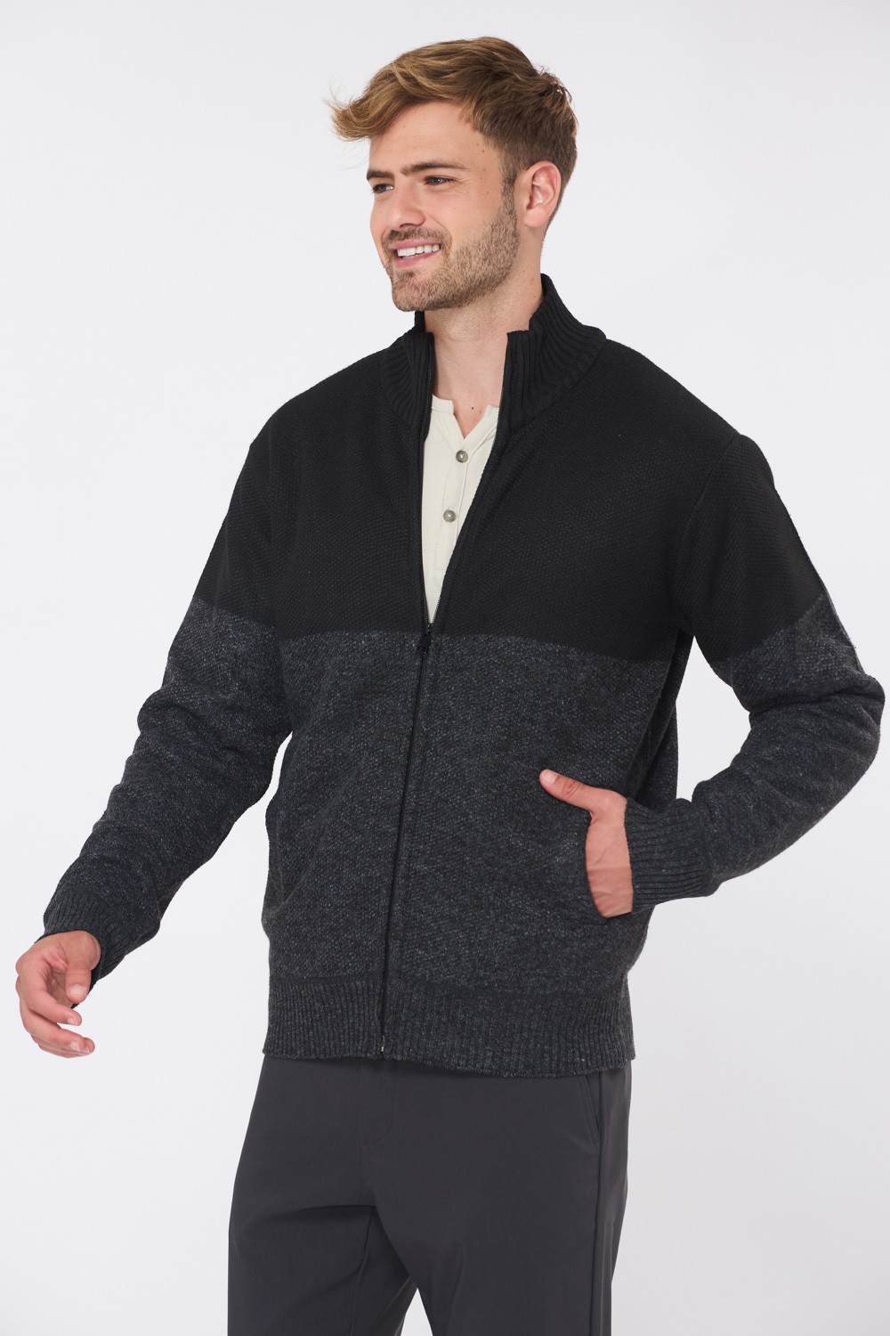 סוודר קרדיגן רוכסן בטנת פרווה – שילוב צבע