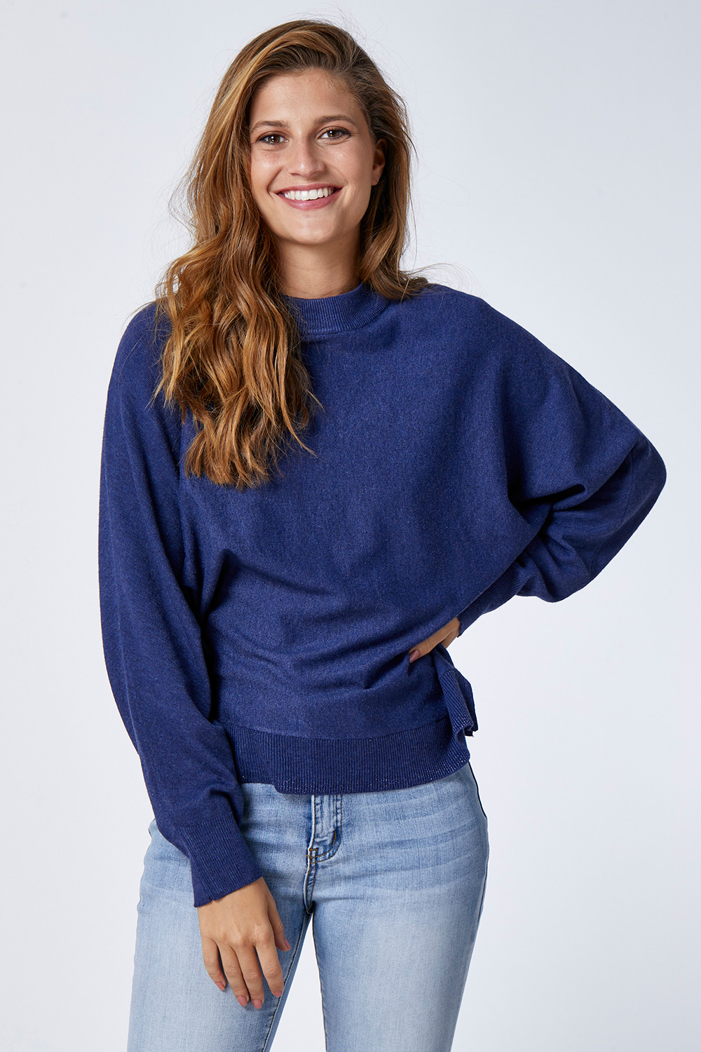 סריג בגזרת עטלף עם פס לורקס נוצץ.