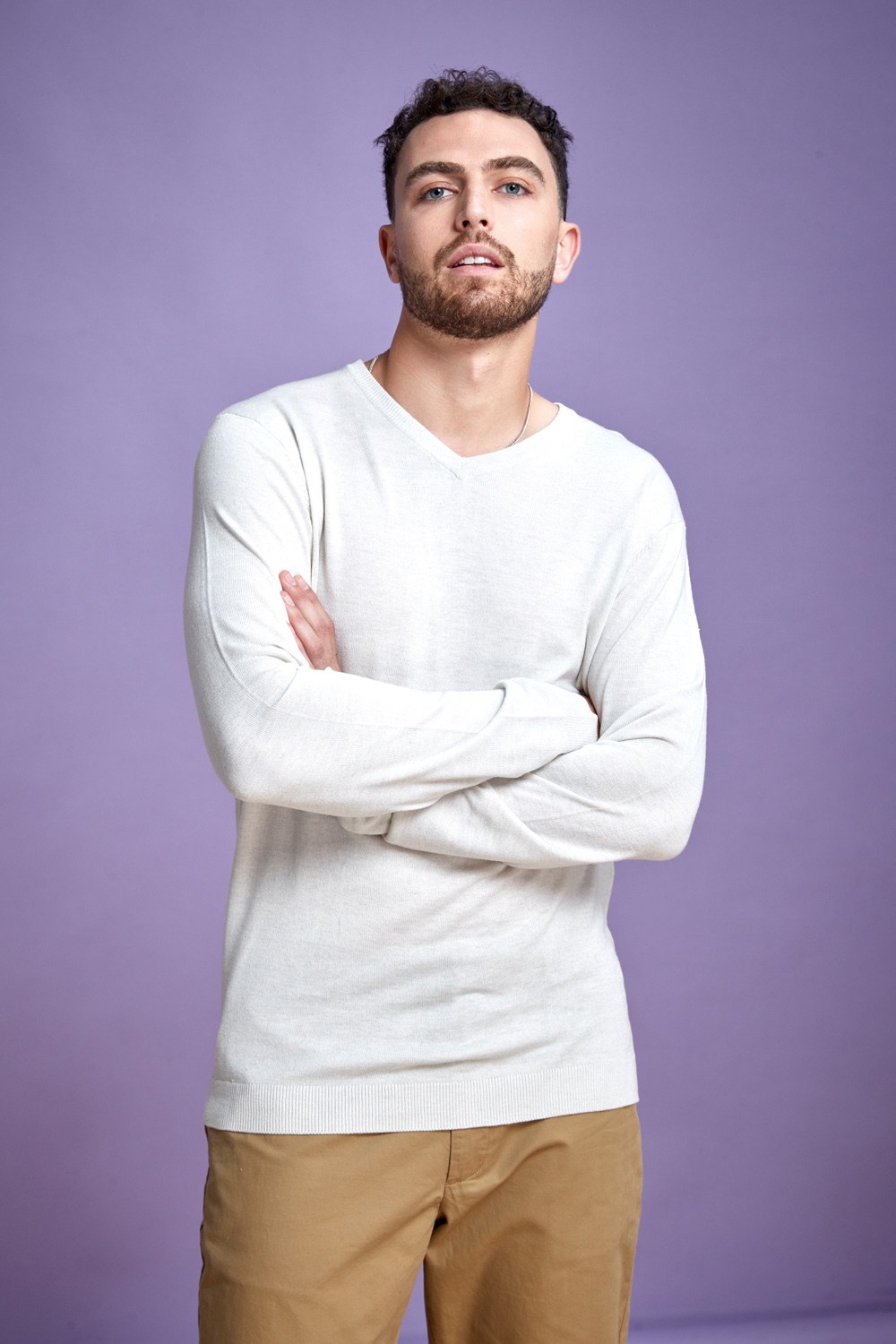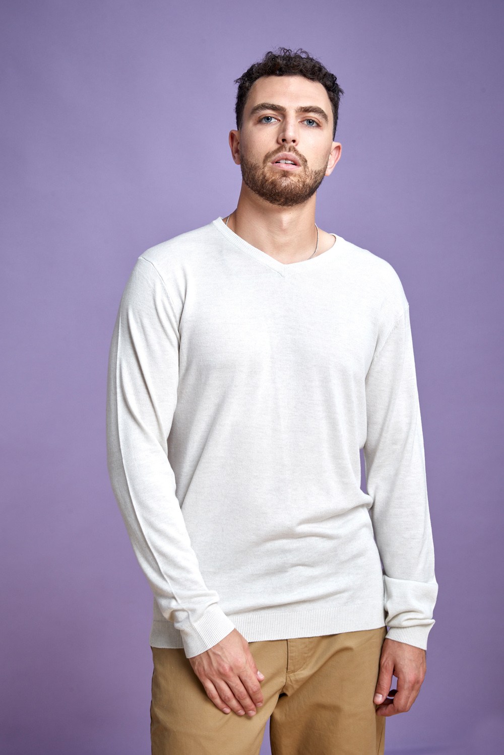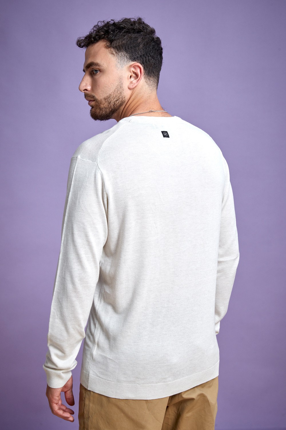 חולצת טי עם מפתח צוואר Y בצבע קונטרסטי