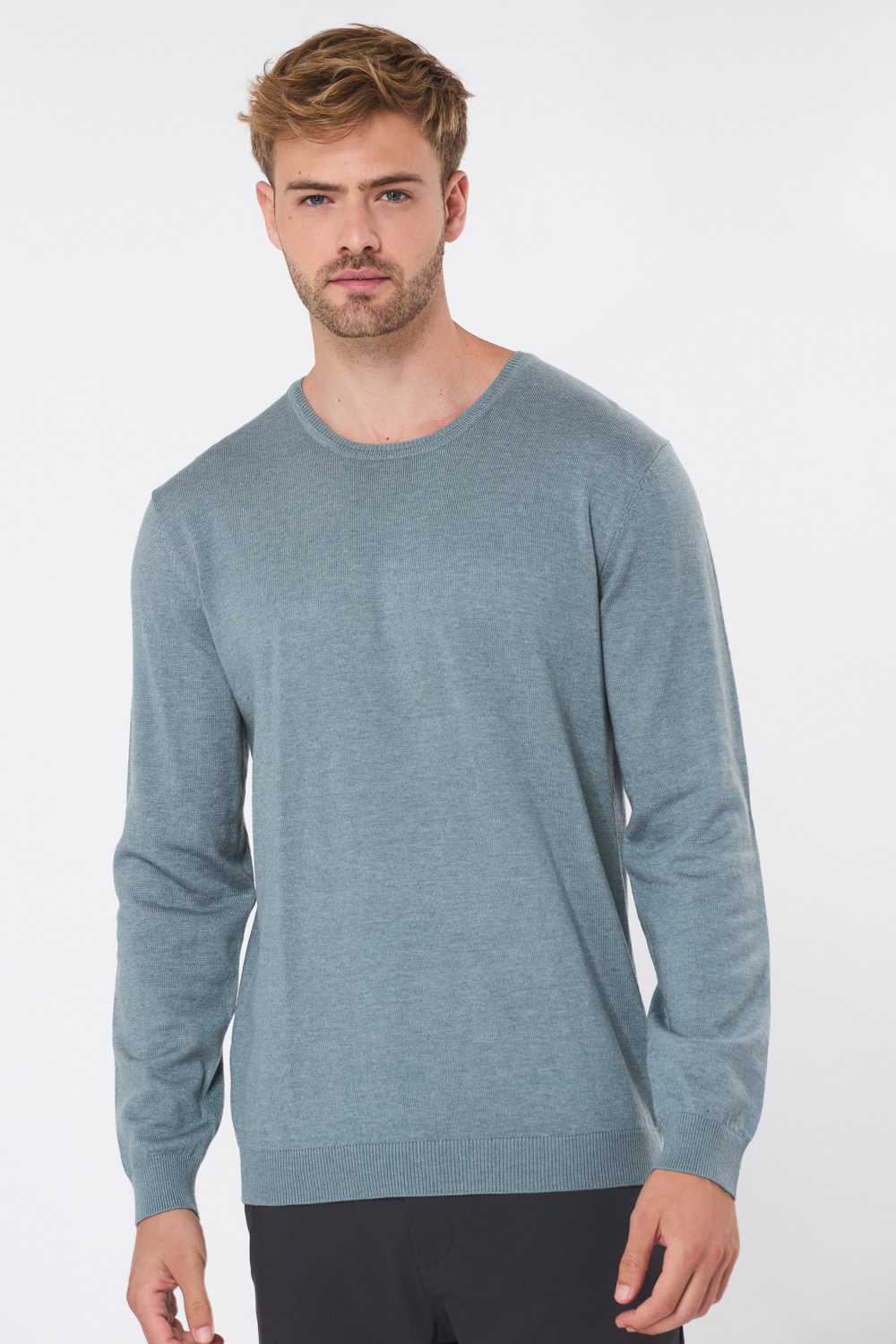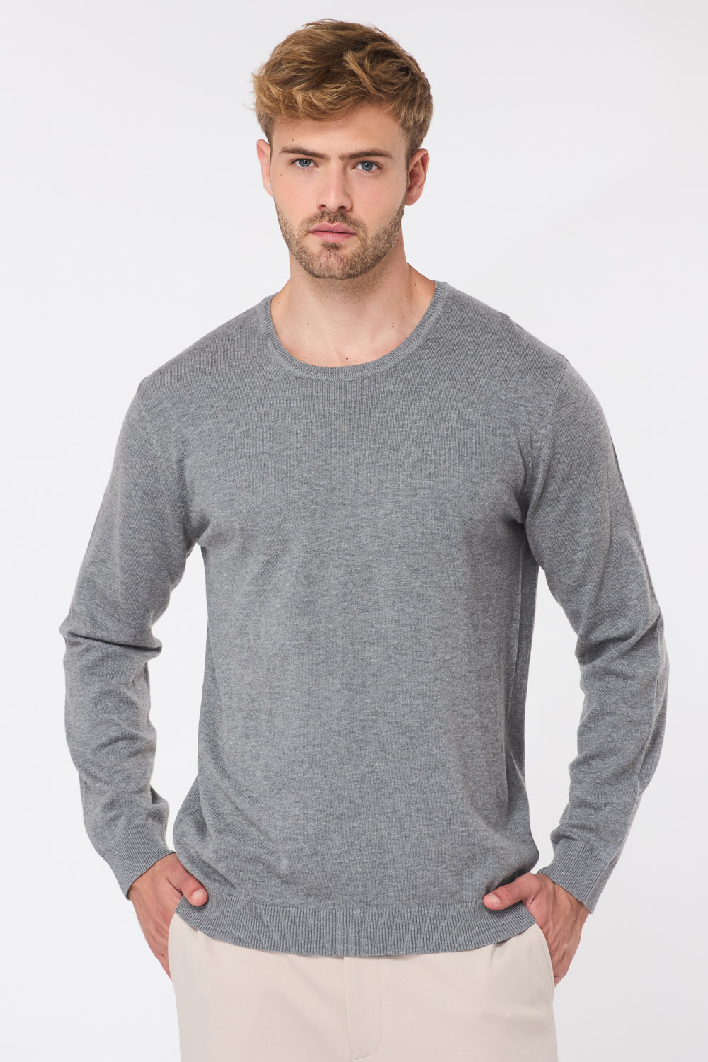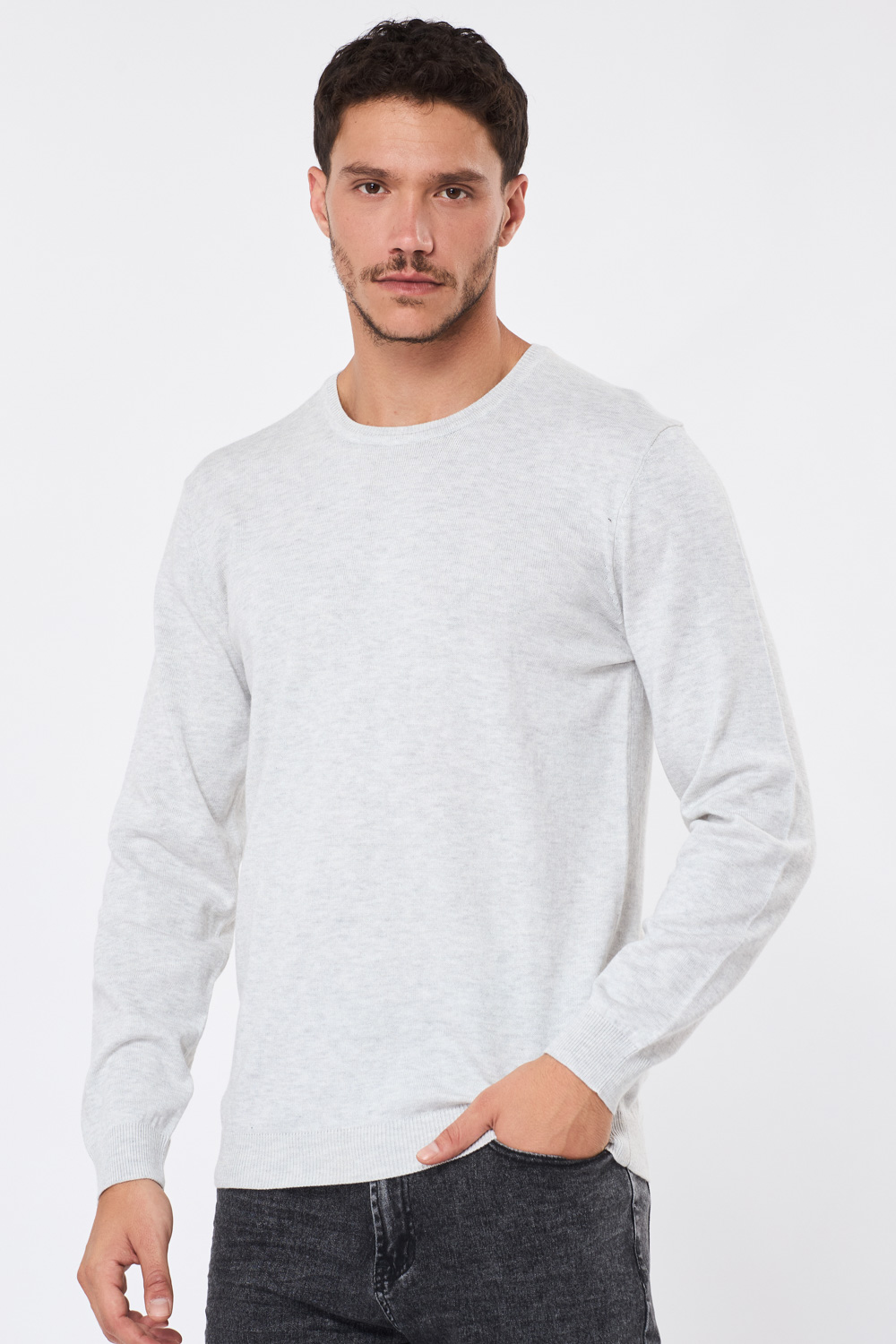 סריג בייסיק צווארון עגול - אפור מלנש