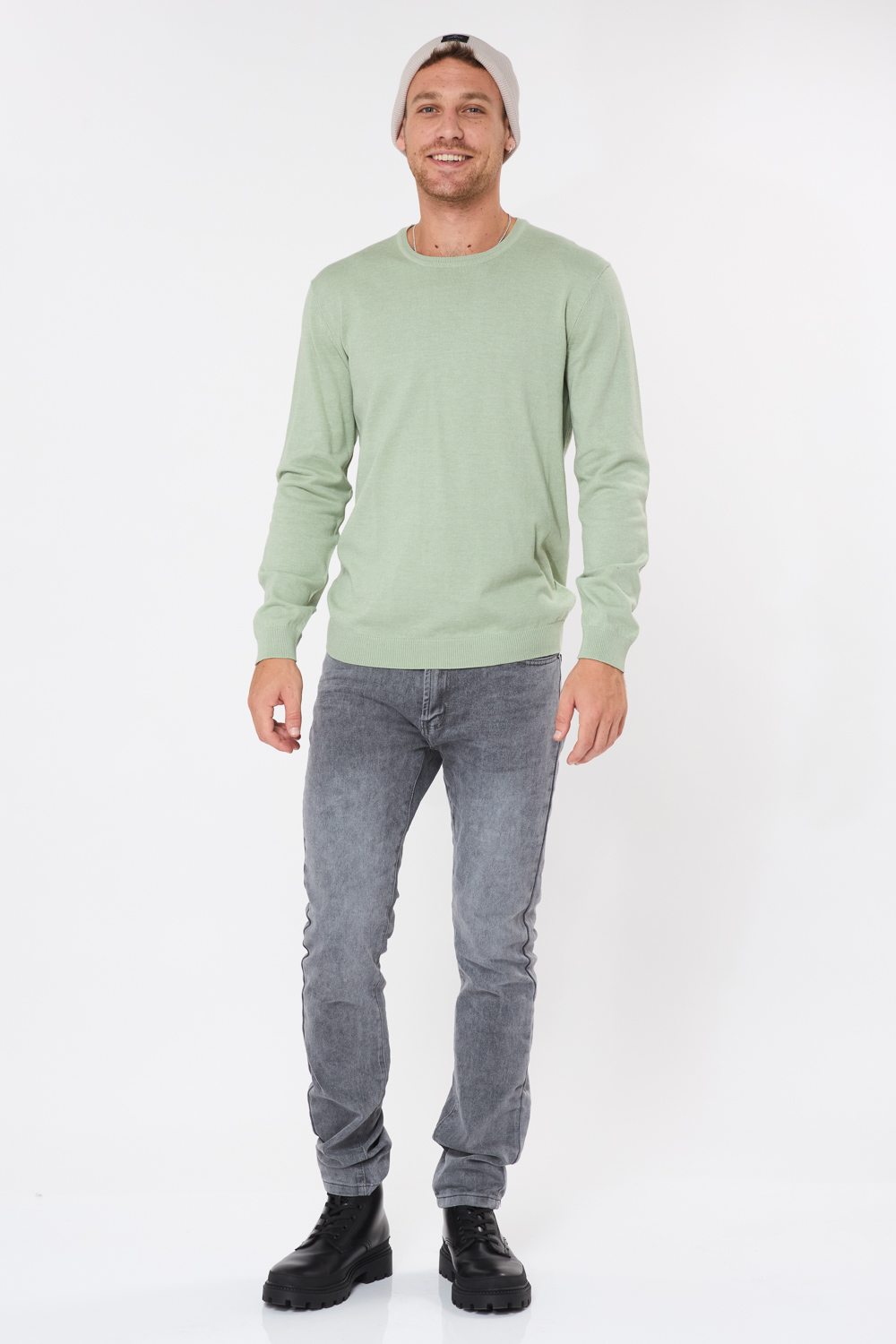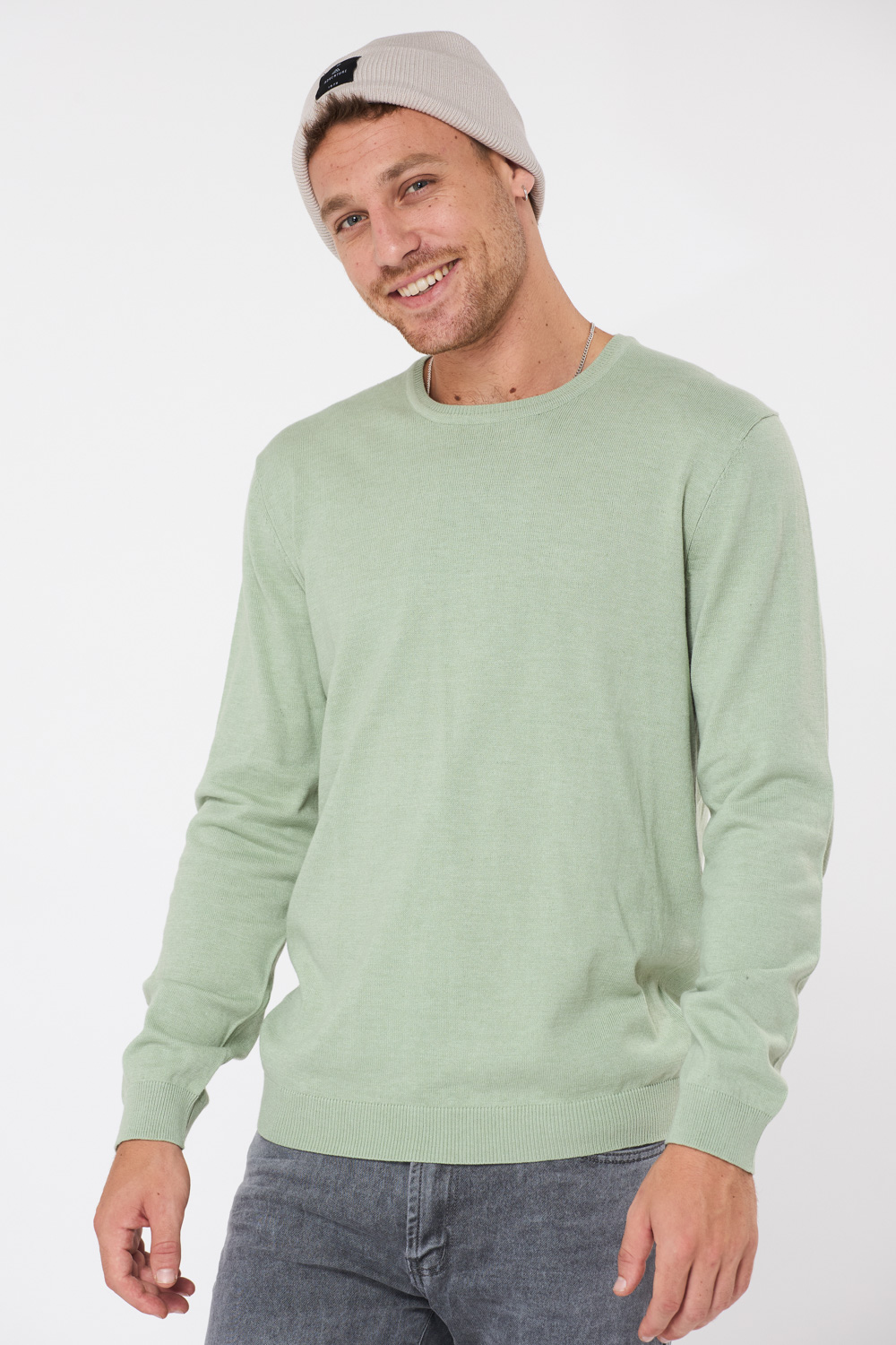 סריג בייסיק צווארון עגול – ירוק בהיר