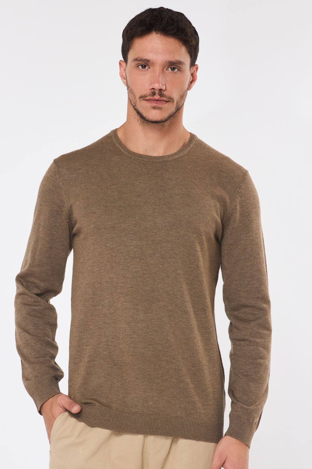 סריג בייסיק צווארון עגול - חום בהיר