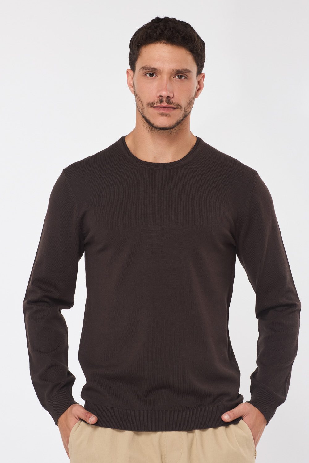 סריג בייסיק צווארון עגול - חום בראוני
