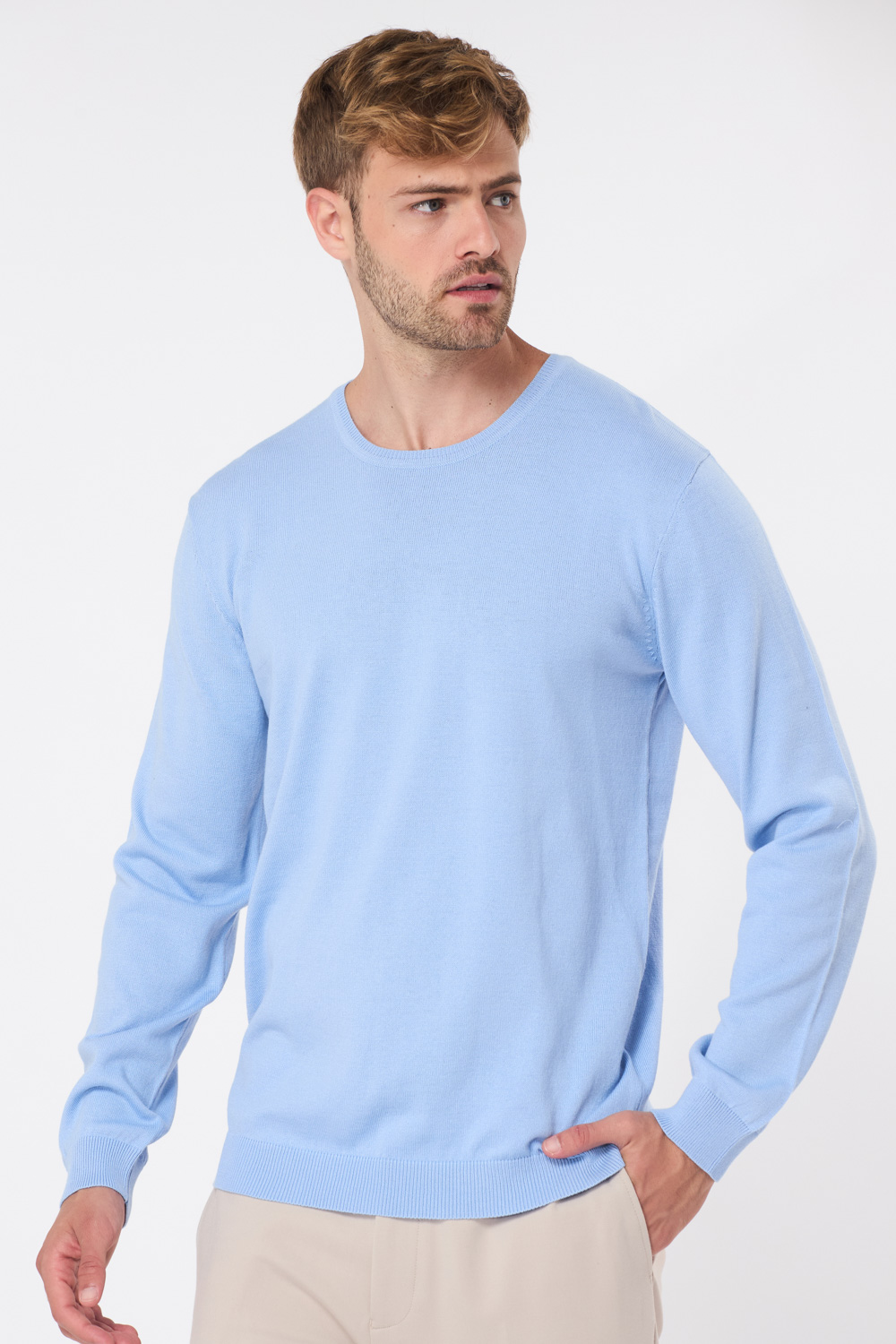 סריג בייסיק צווארון עגול - תכלת