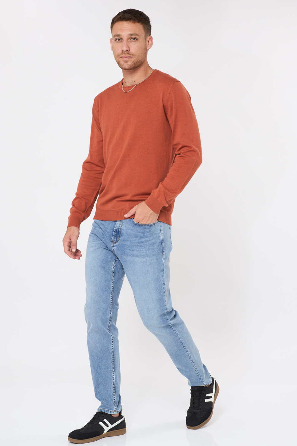 סריג בייסיק צווארון עגול - כתום כהה