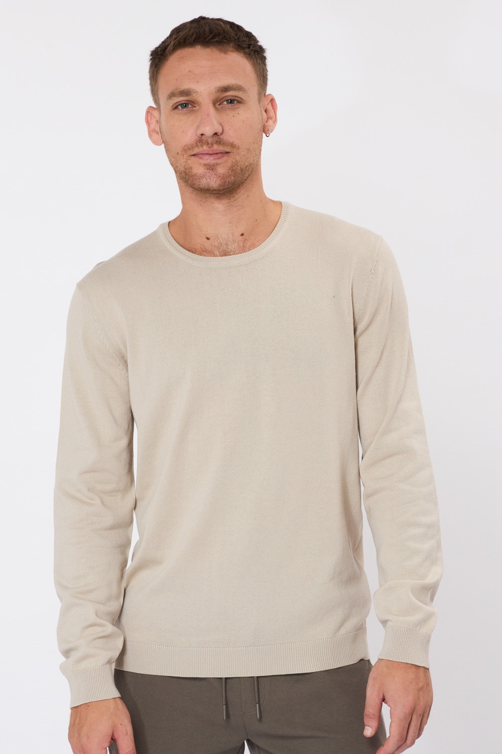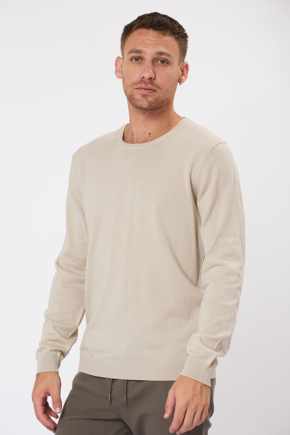 סריג בייסיק צווארון עגול - אבן