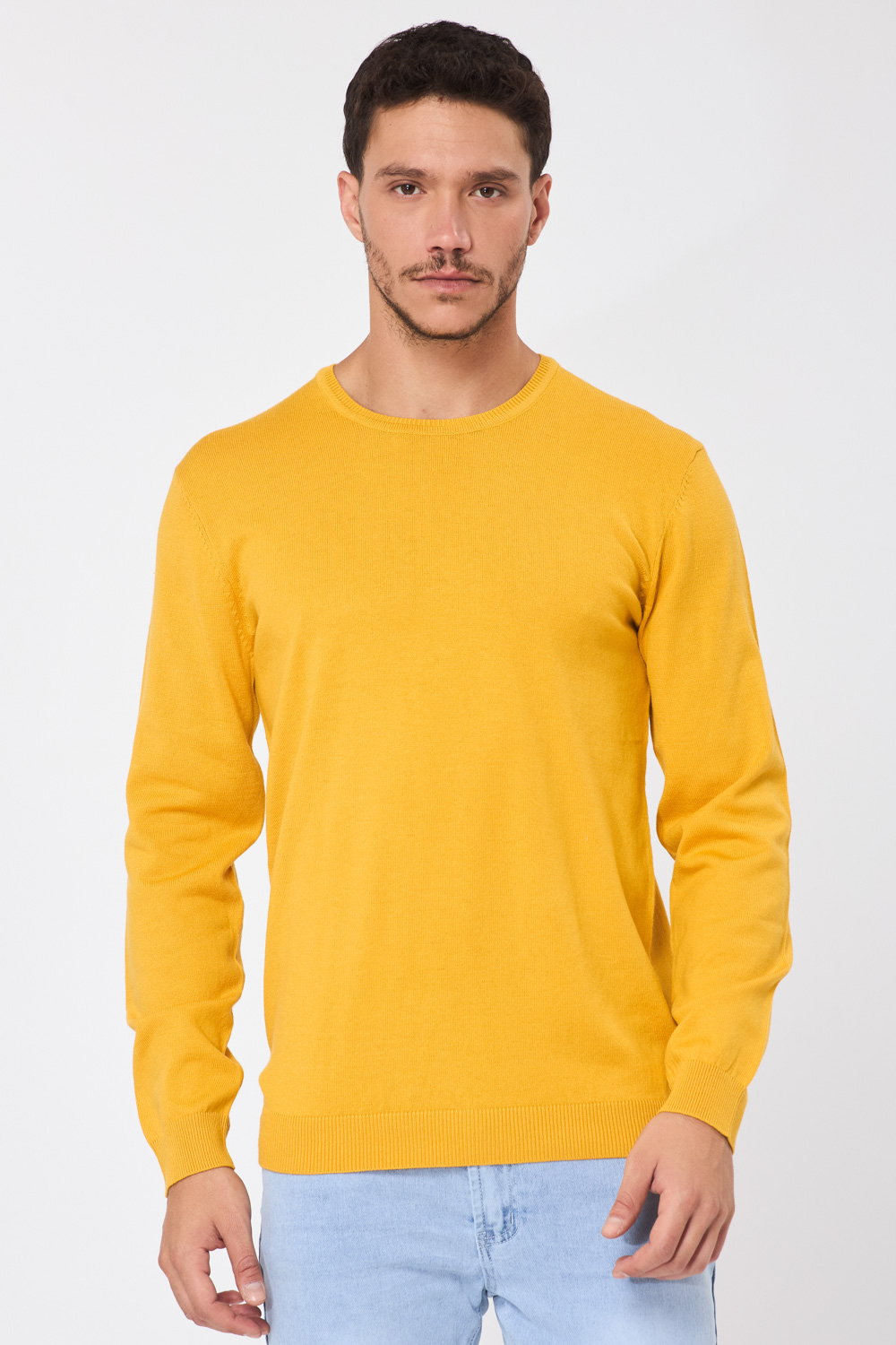 סריג בייסיק צווארון עגול - צהוב חרדל