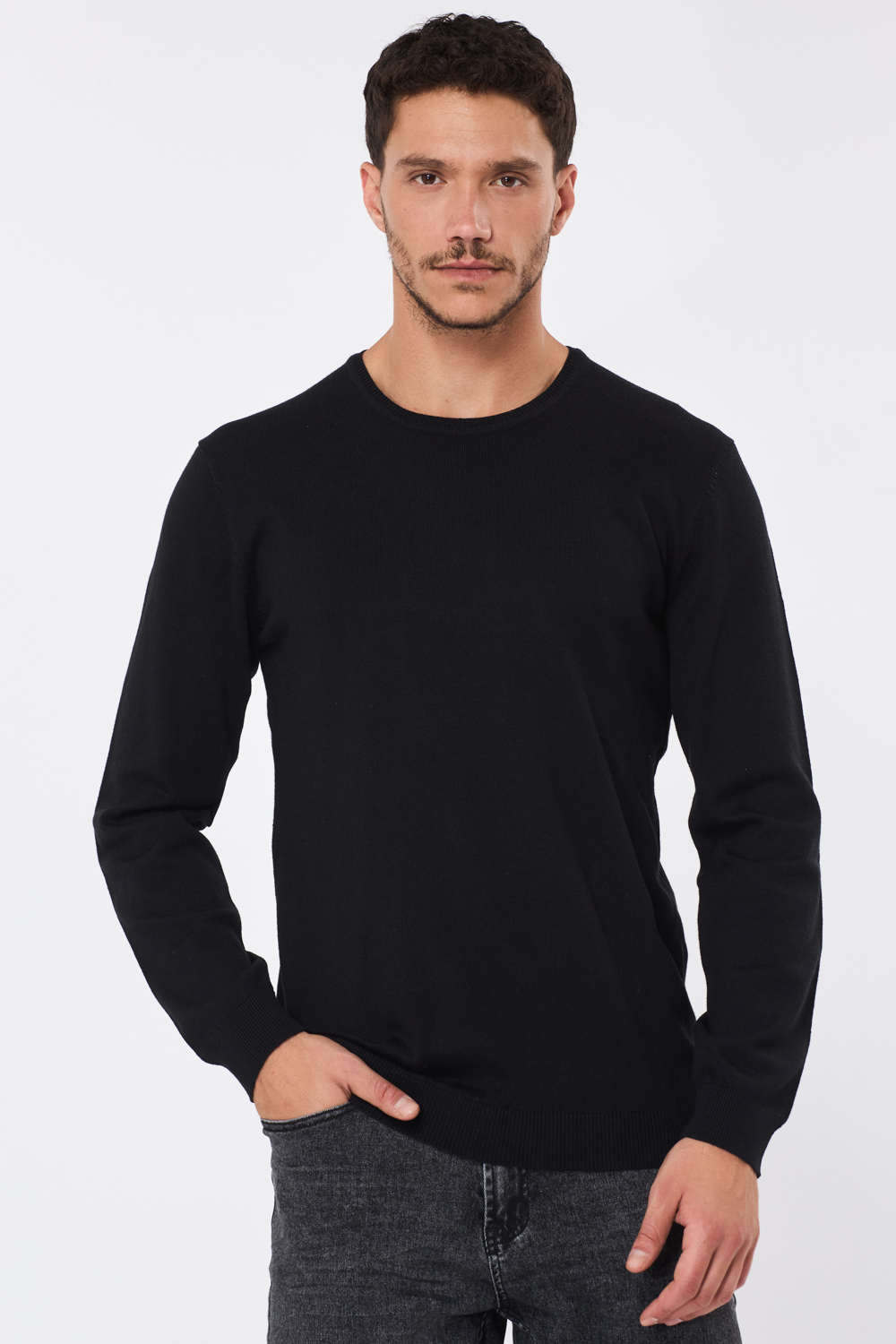 סריג בייסיק צווארון עגול - שחור