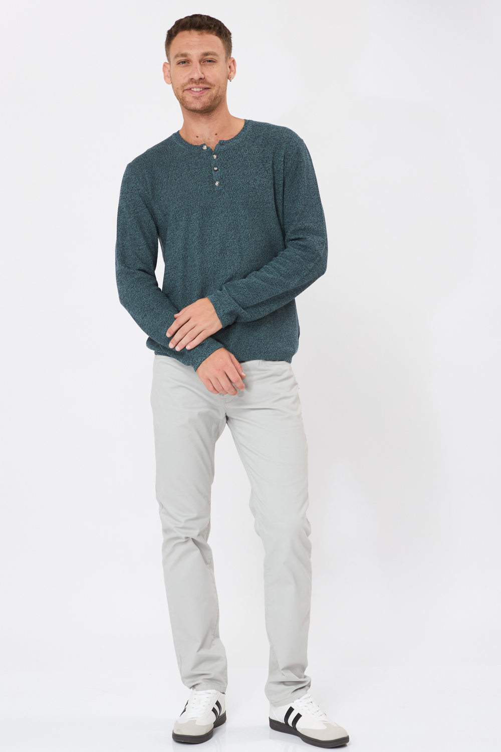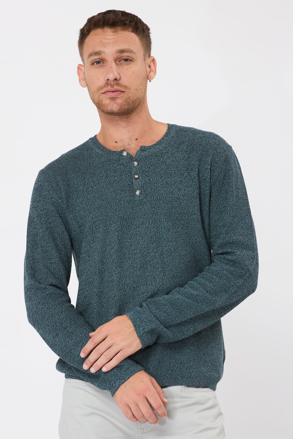 סריג קל סריגת ואפל עם כפתורים – מיקס ירוק שחור
