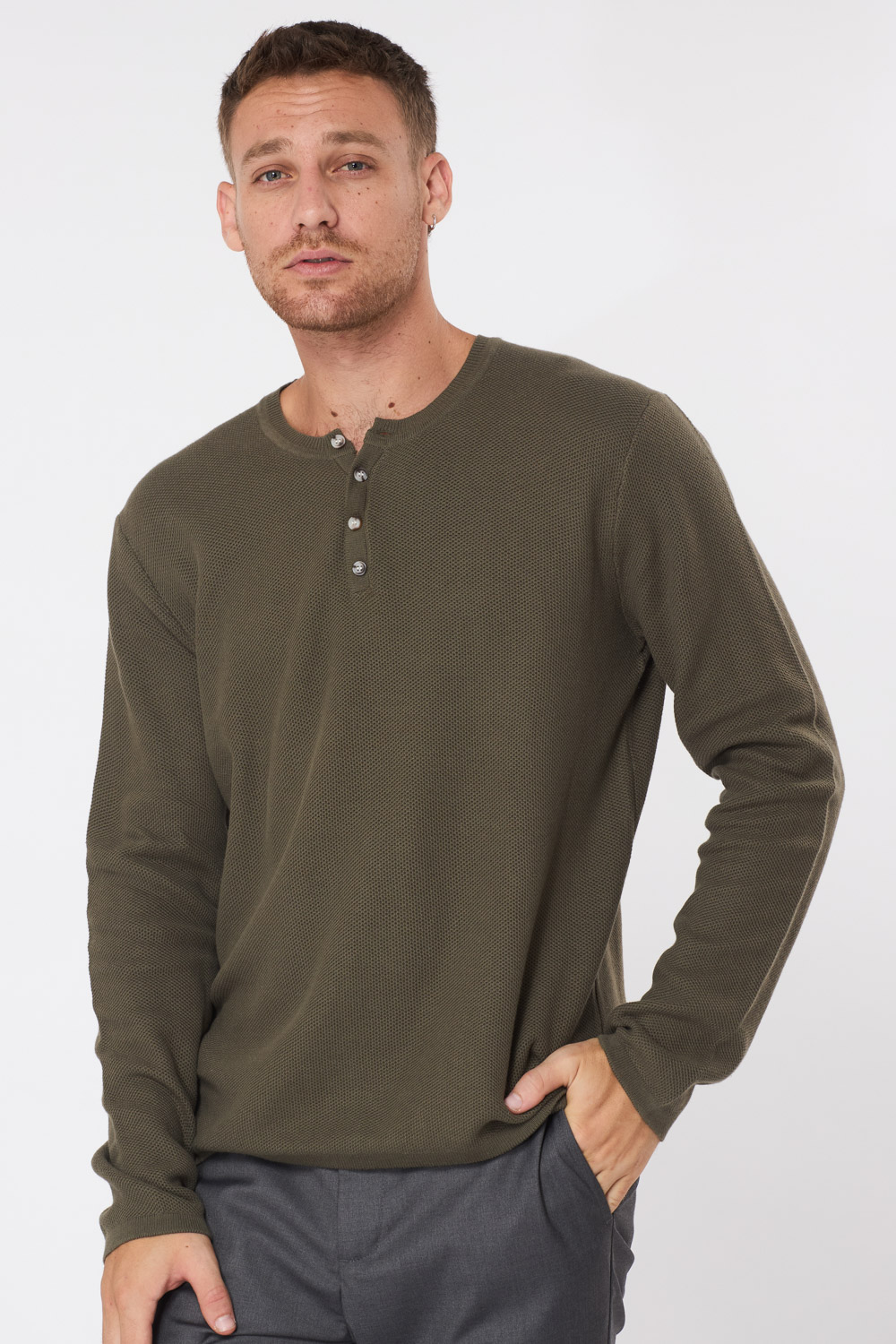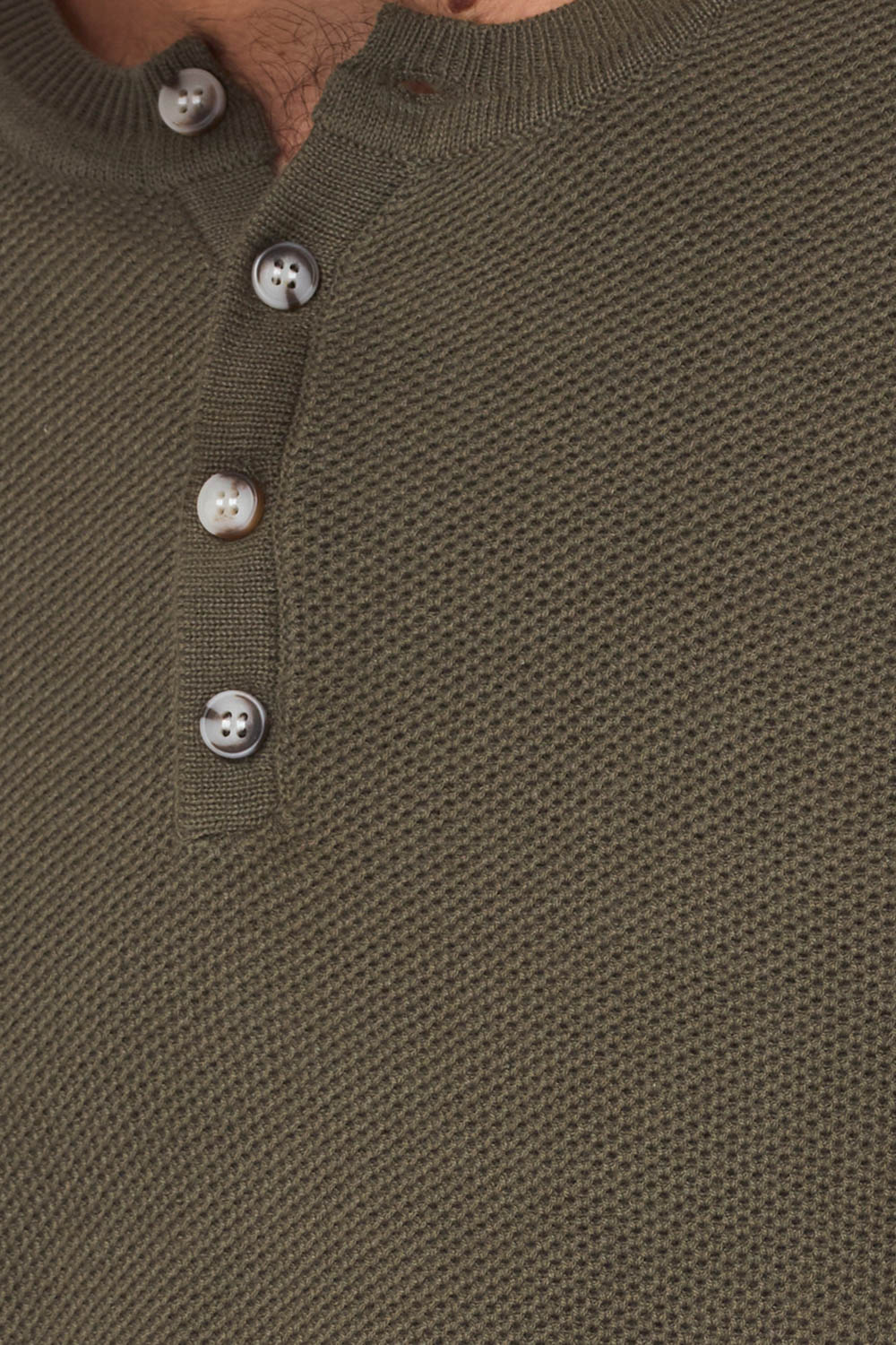 סריג קל סריגת ואפל עם כפתורים - זית