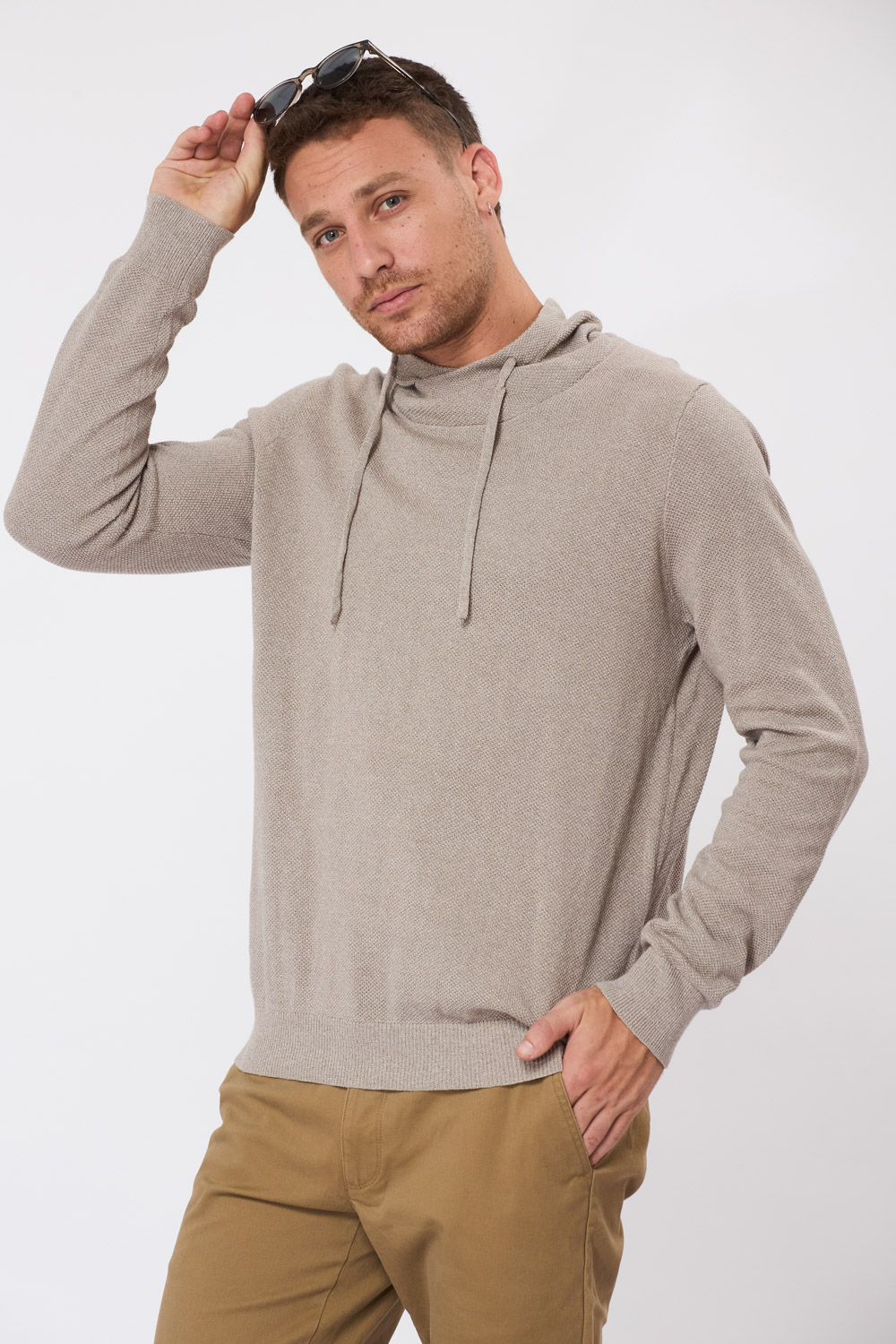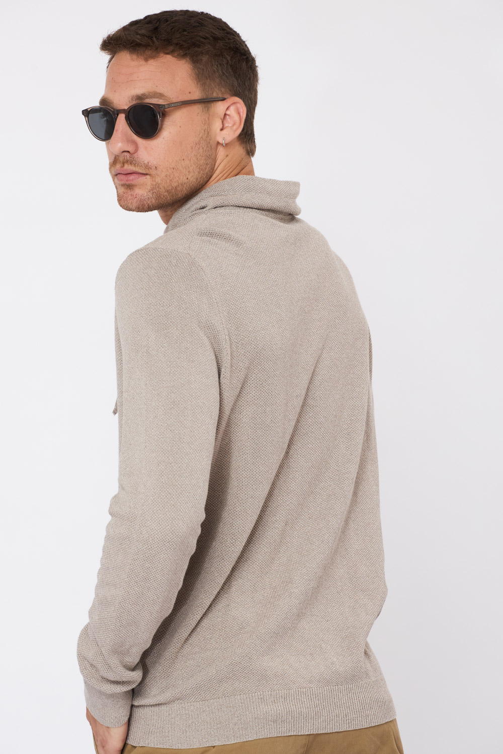 סריג קל סריגת ואפל צווארון גבוה – בז'