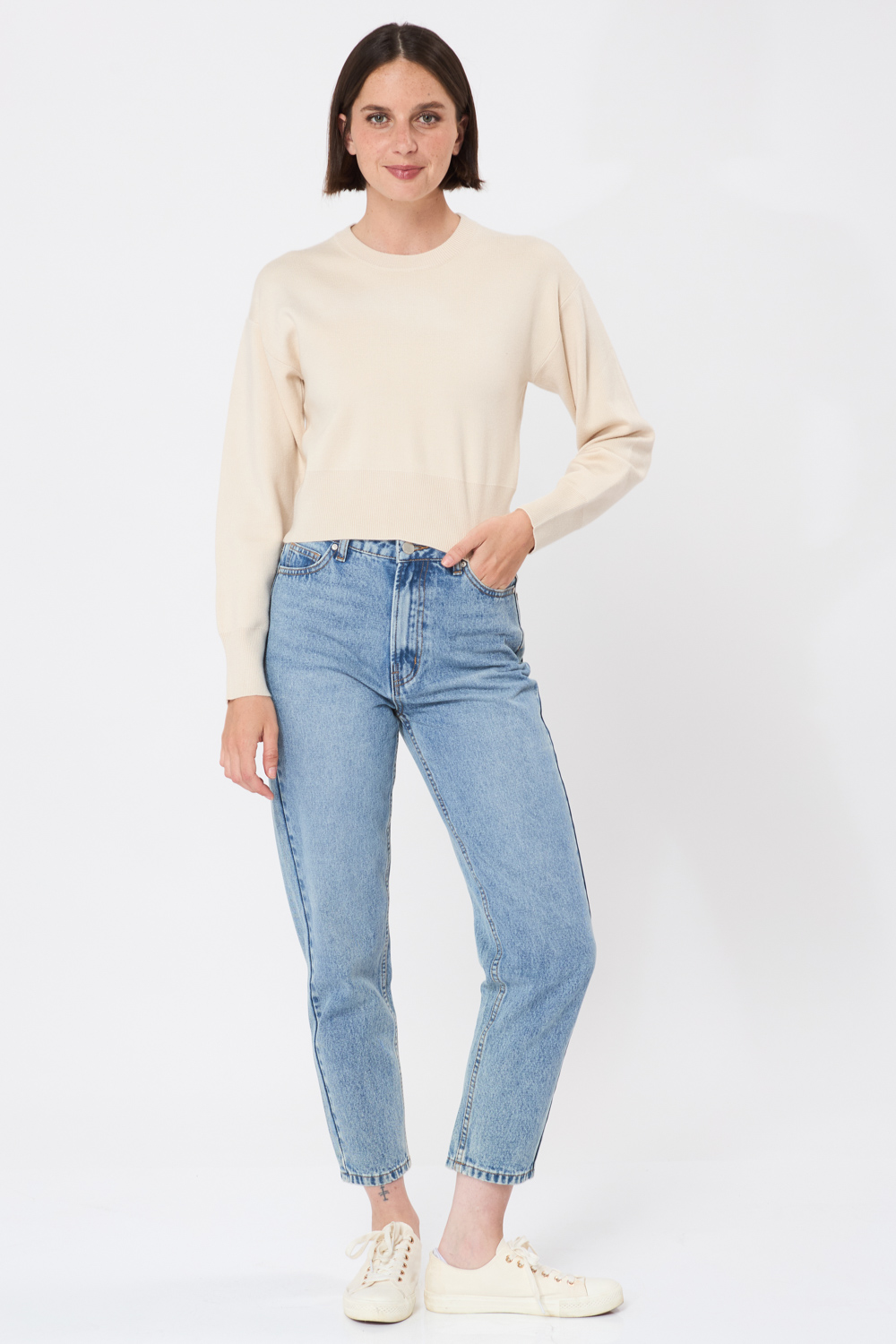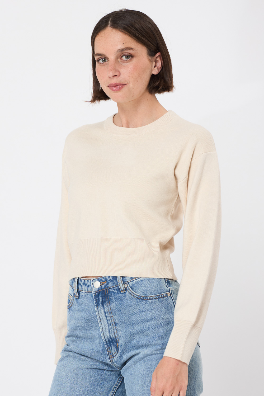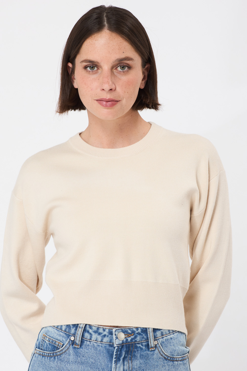 חולצת בייסיק ריב שרוול ארוך – אבן