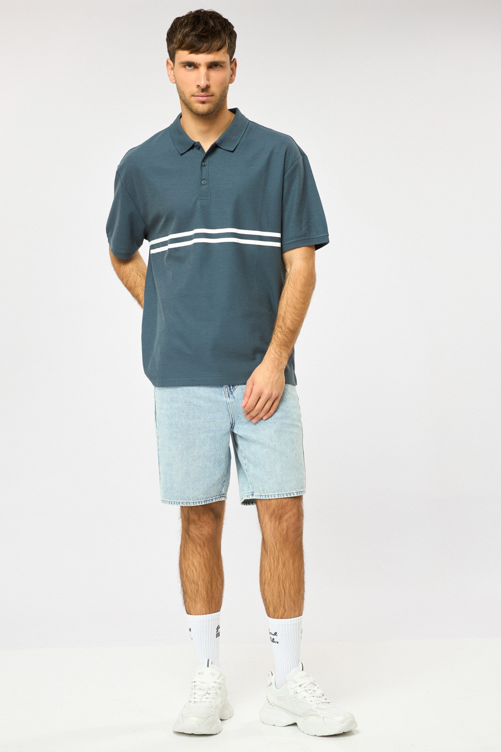 פולו פיקה בוקסי פסים – כחול ירקרק