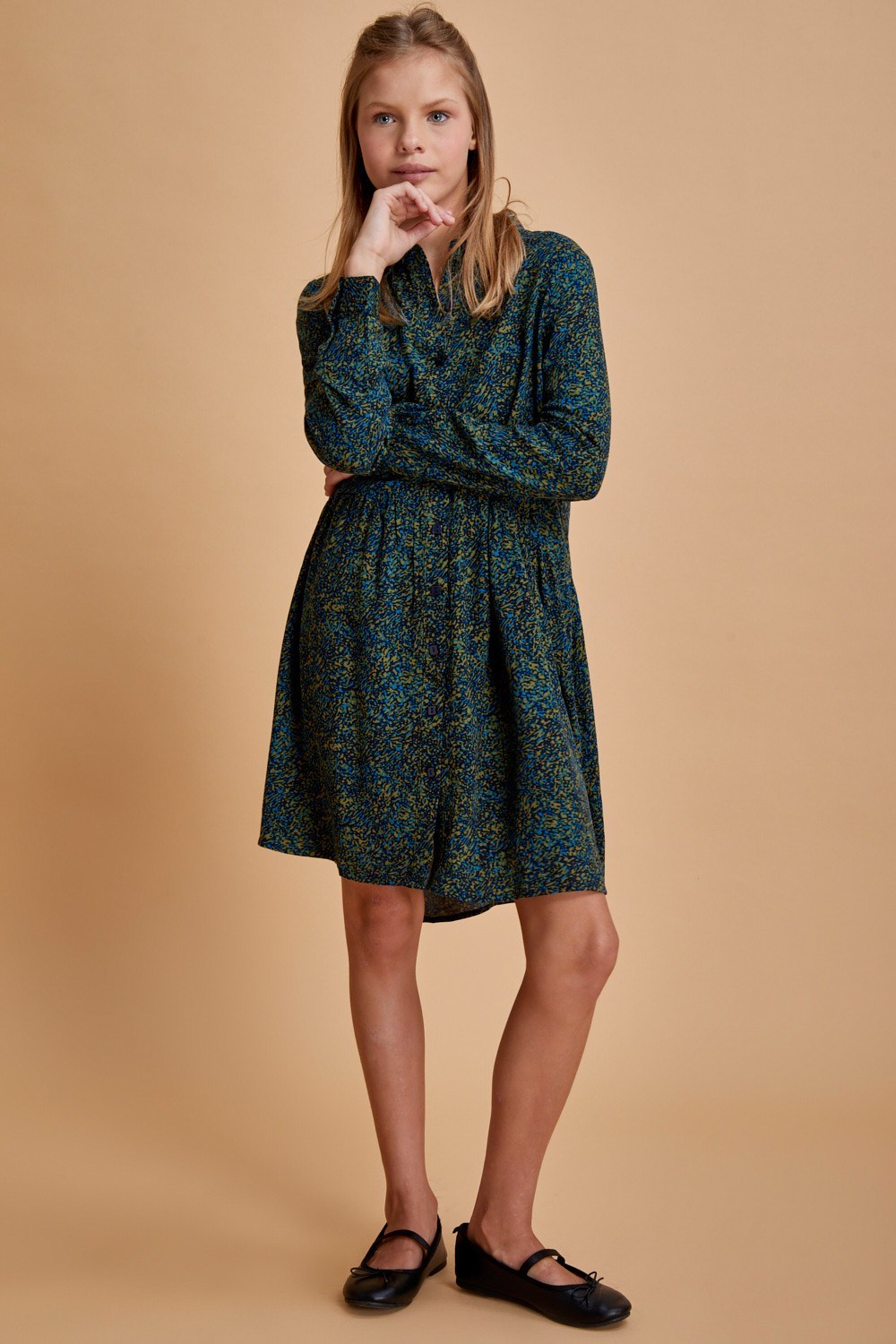 שמלת כפתורים מודפסת