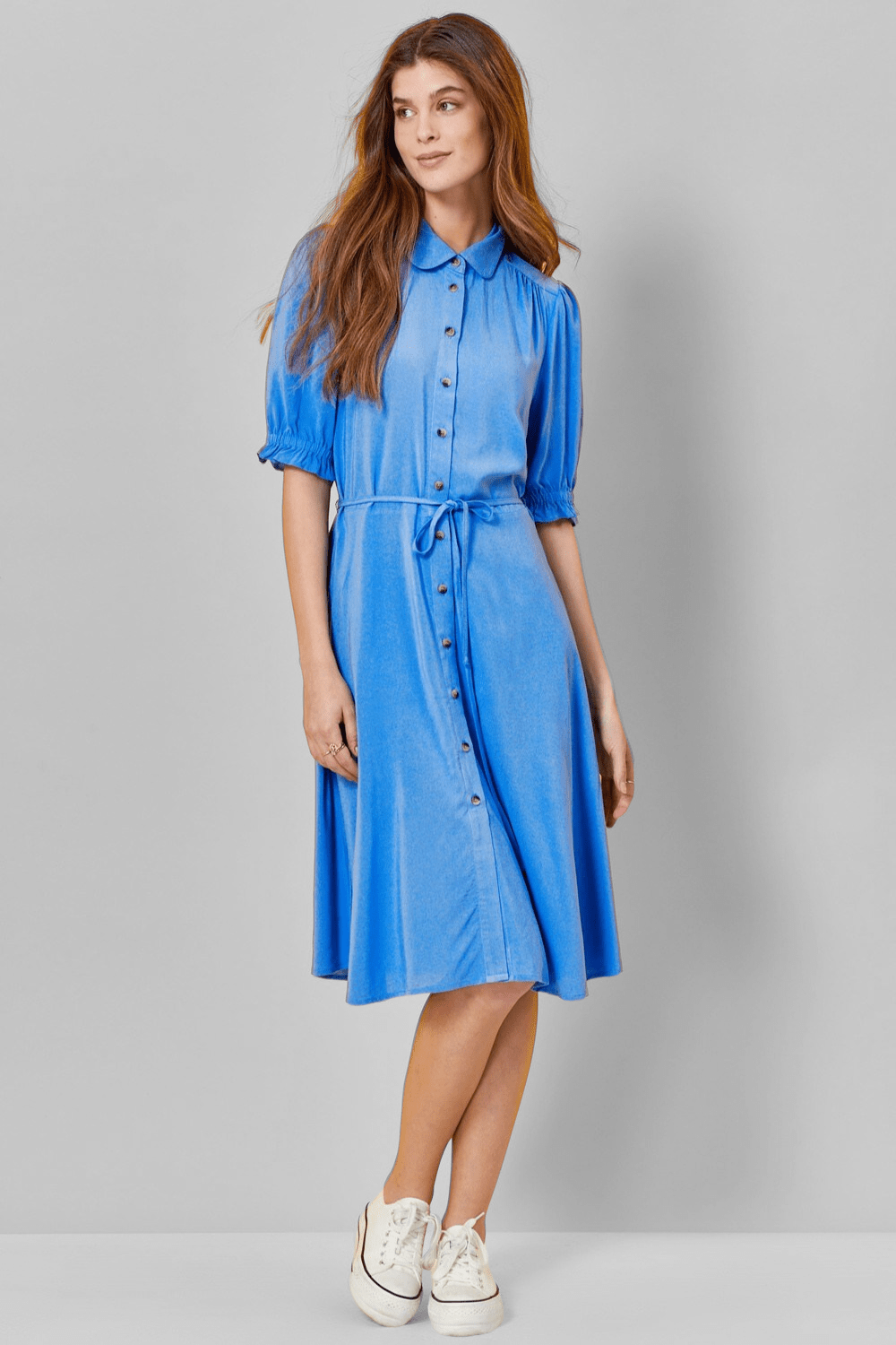 | שמלת כפתורים צווארון מעוגל שרוולים עם סיומת כיווץ נפתח חגורת בד לקשירה במותןהרכב בד:100% ויסקוזהגובה דוגמנים: 177מידה דוגמנית: 36 |