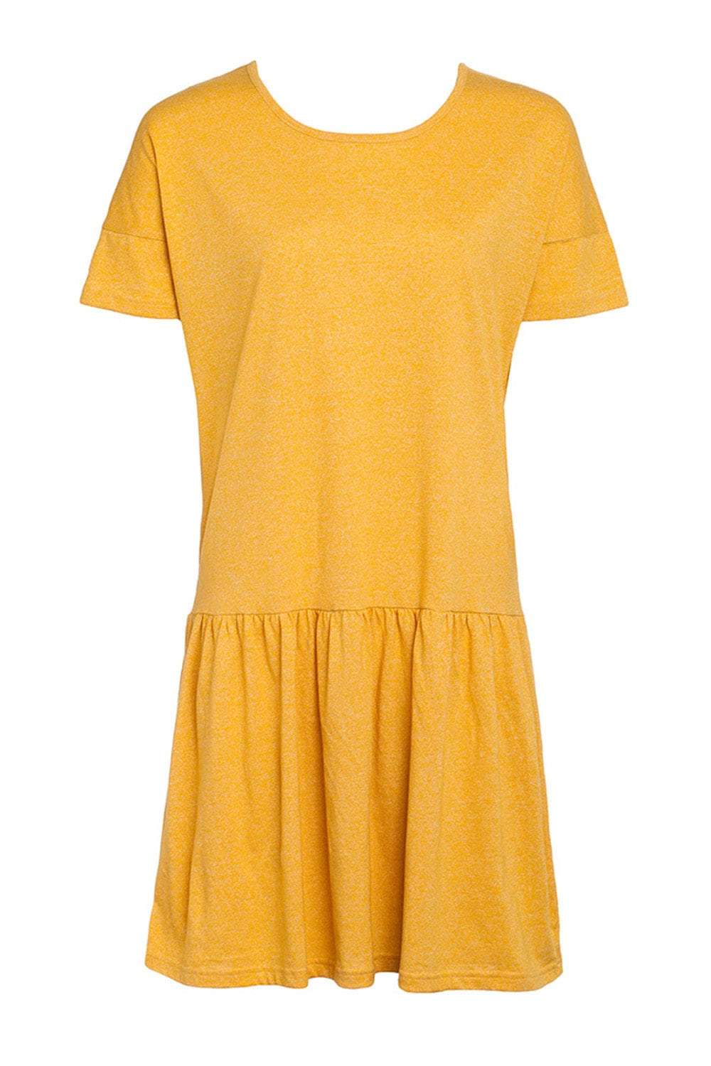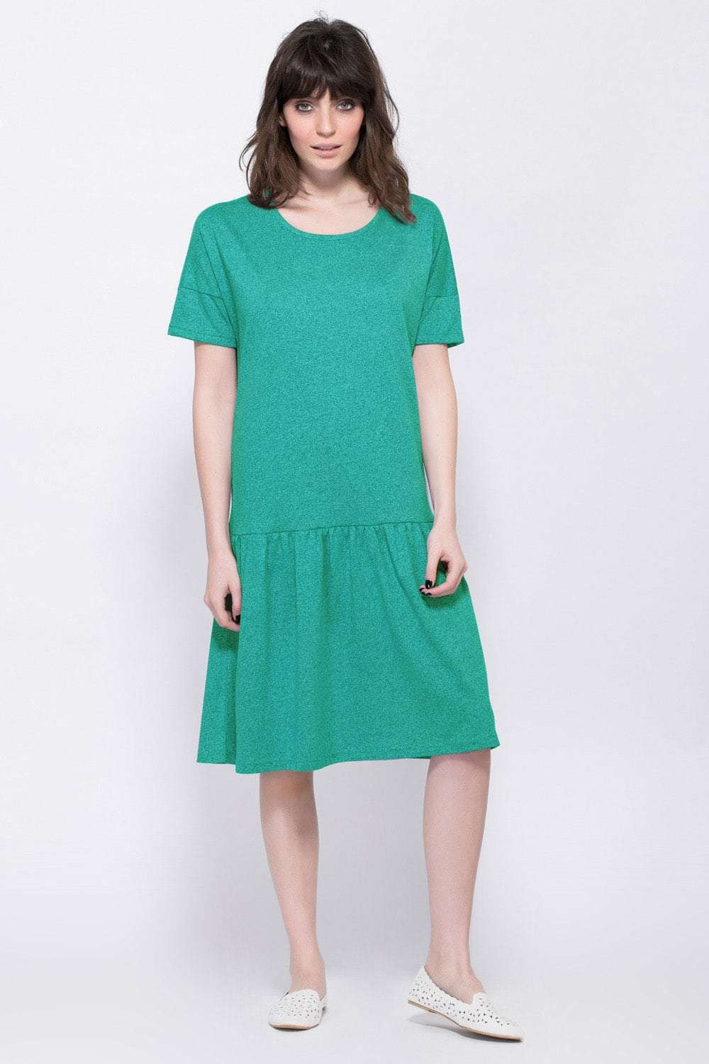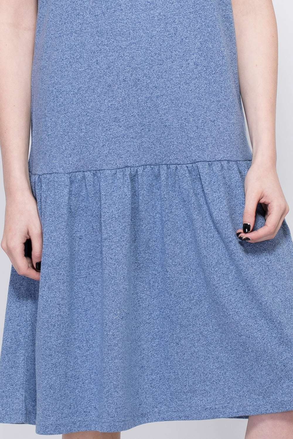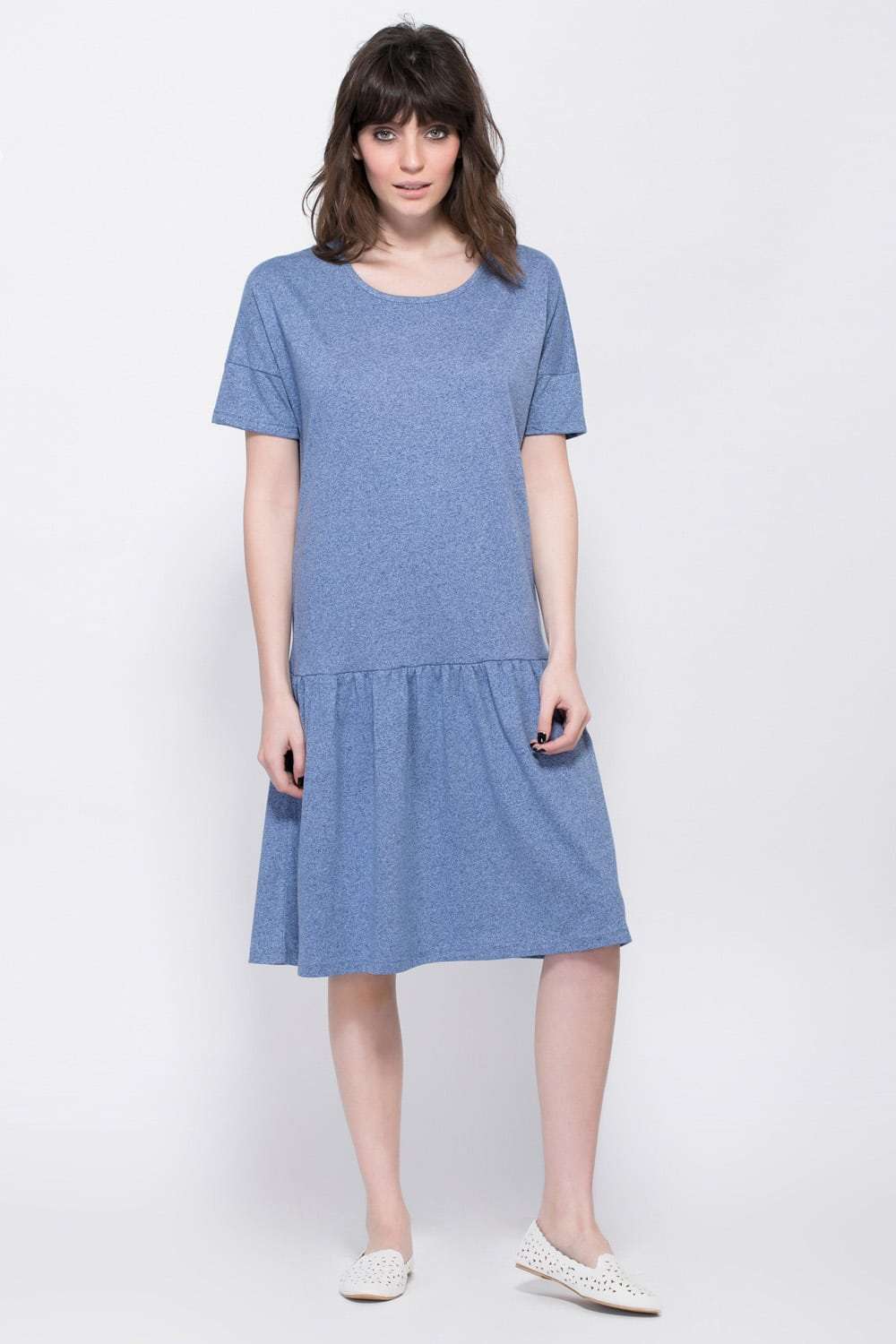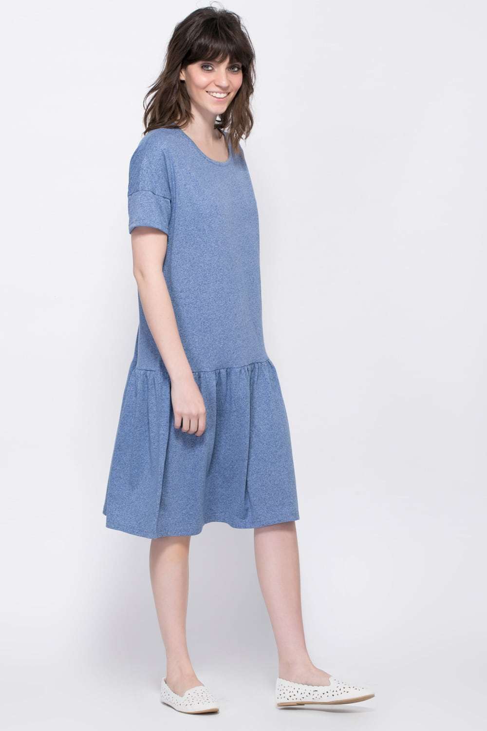 שמלת סריג באורך ברך ובגזרה מחמיאה, טקסטורת מלאנג´, מפתח צוואר עגול, שרוולים שמוטים שמוסיפים טאצ' אופנתי לקז'ואל.