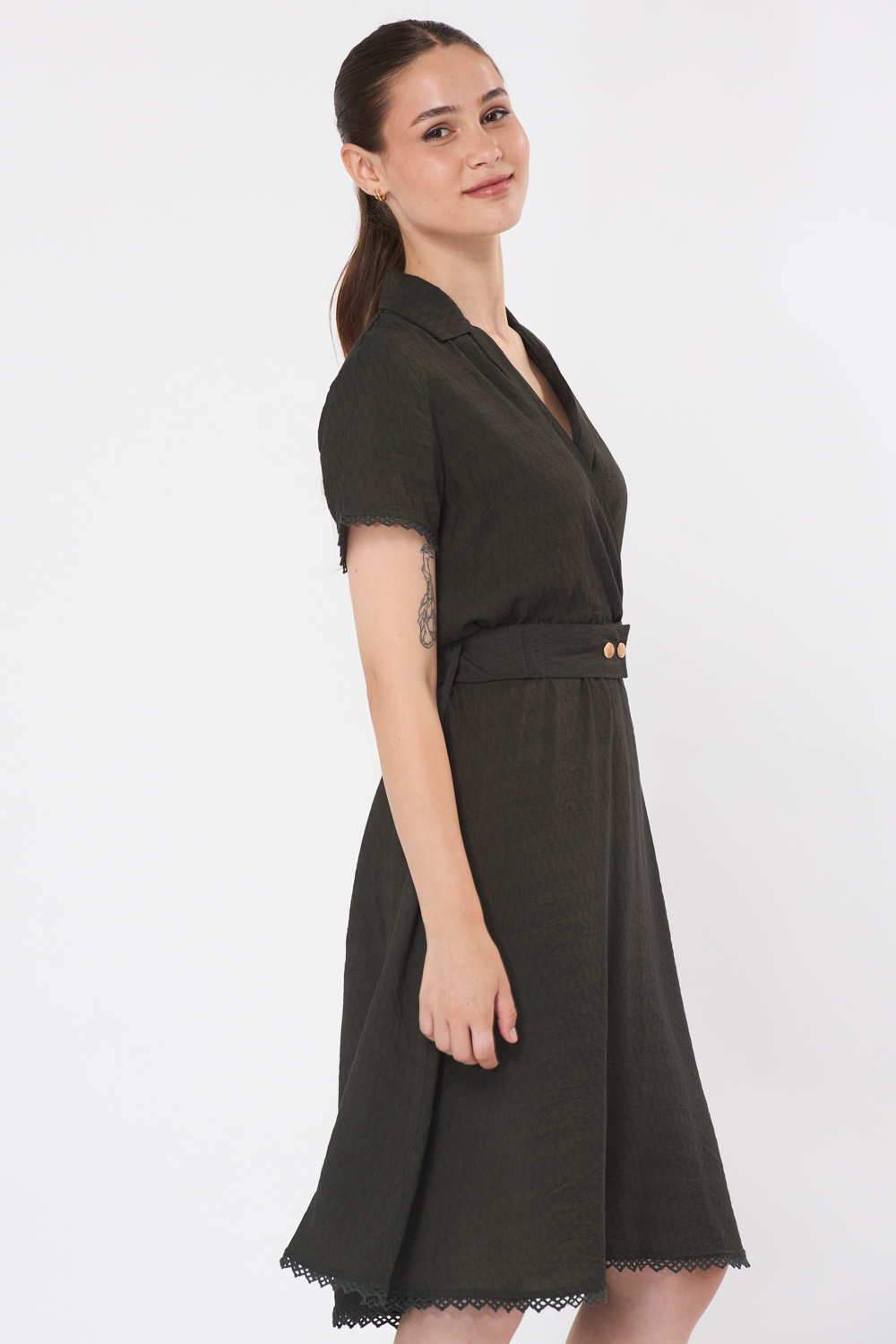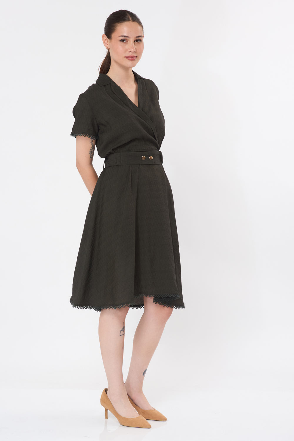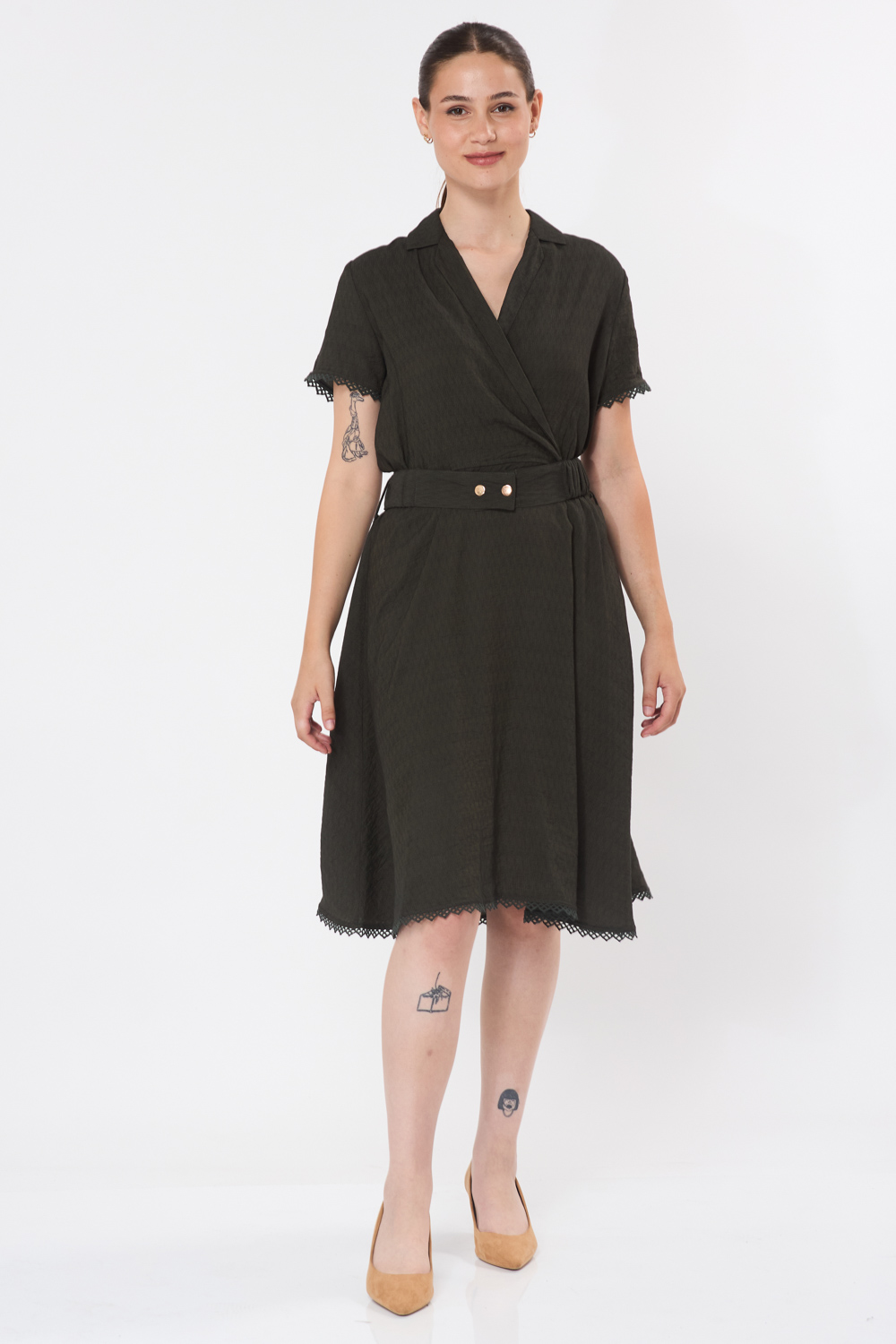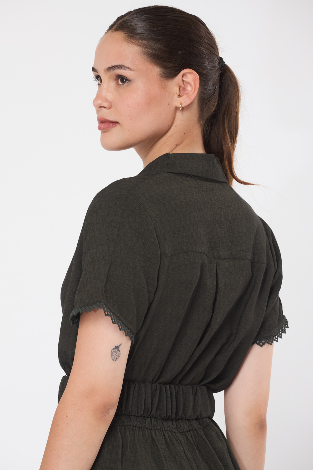 וחגורת בד אלסטית לכיווץ והדגשת המותן