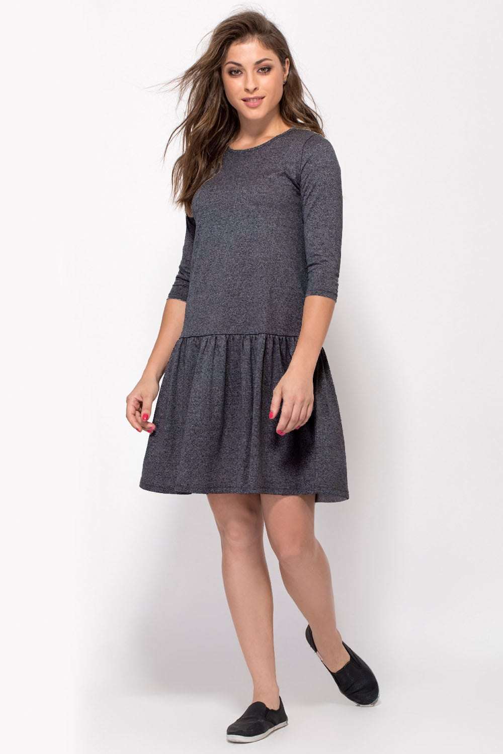 הכירי את ההתמכרות החדשה שלך, שמלה בגזרה משוחררת שנשפכת על הגוף, טקסטורת מלאנג', מכפלת פפלום באורך הברך, צווארון עגול, שרוולים 3/4.