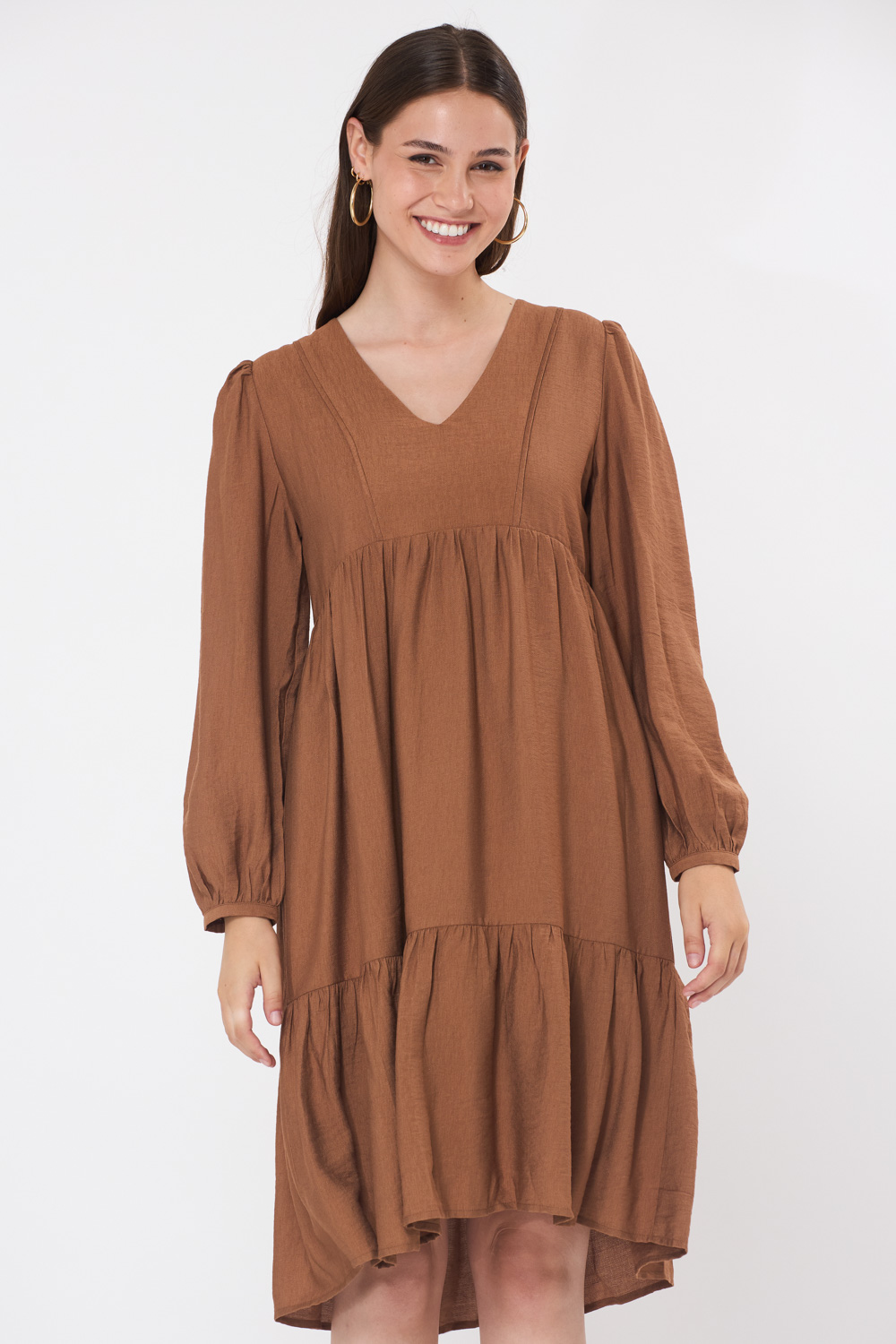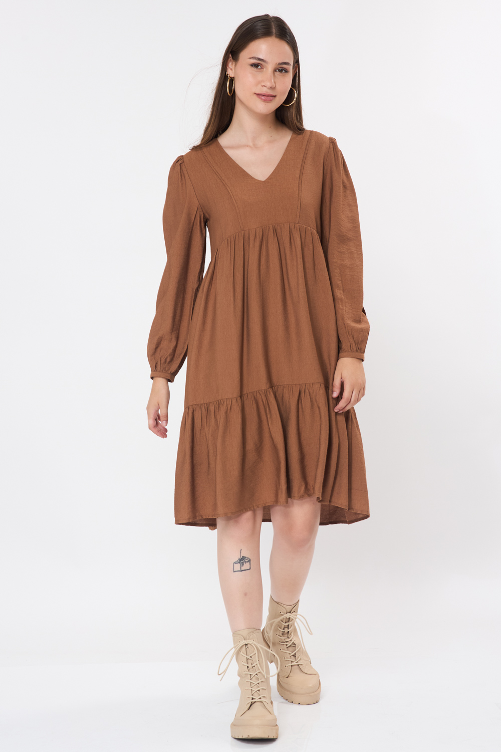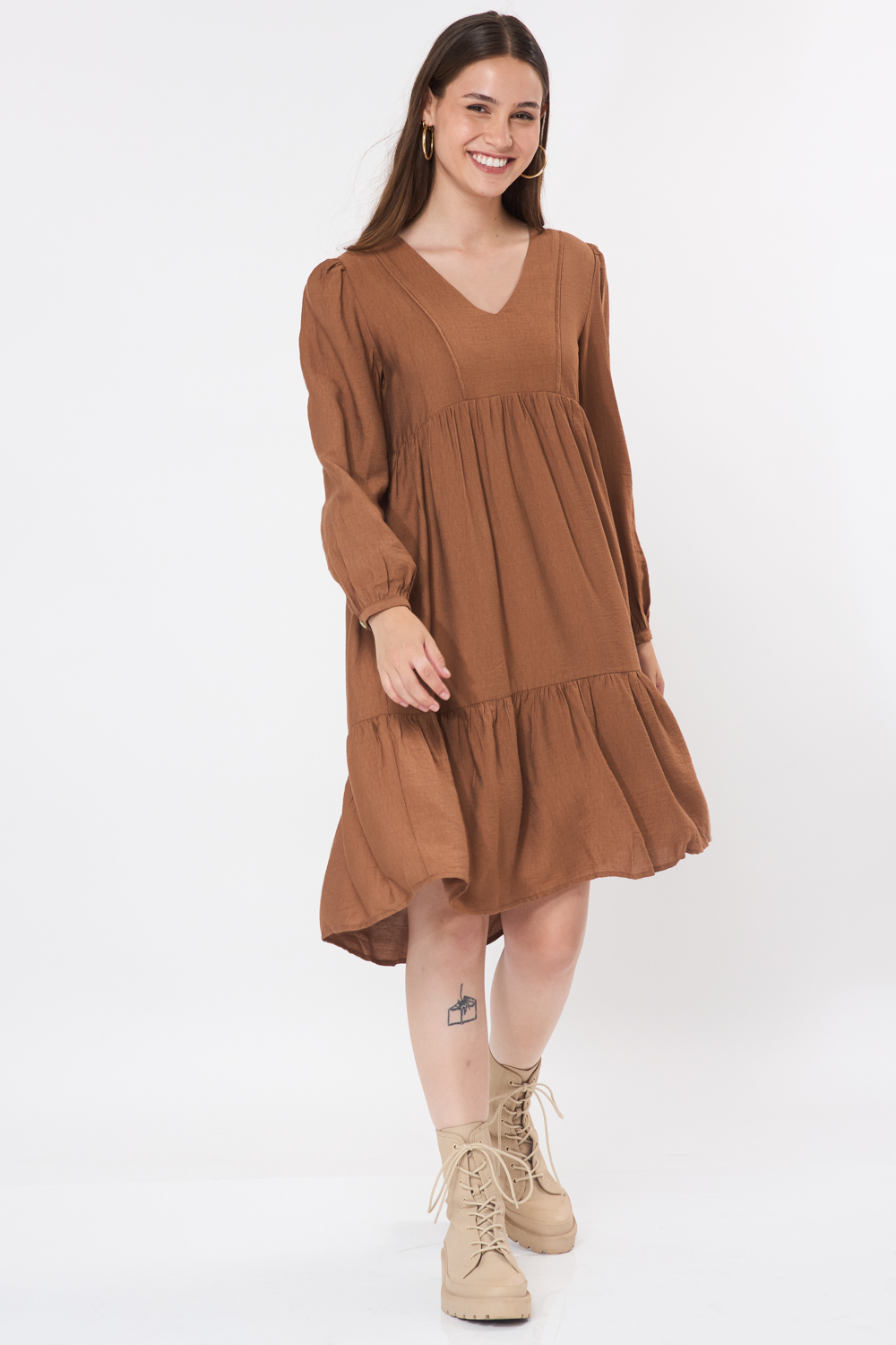 שמלת קומות מחשוף V - חום