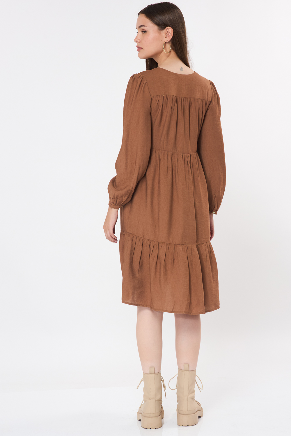 שמלת קומות מחשוף V – חום