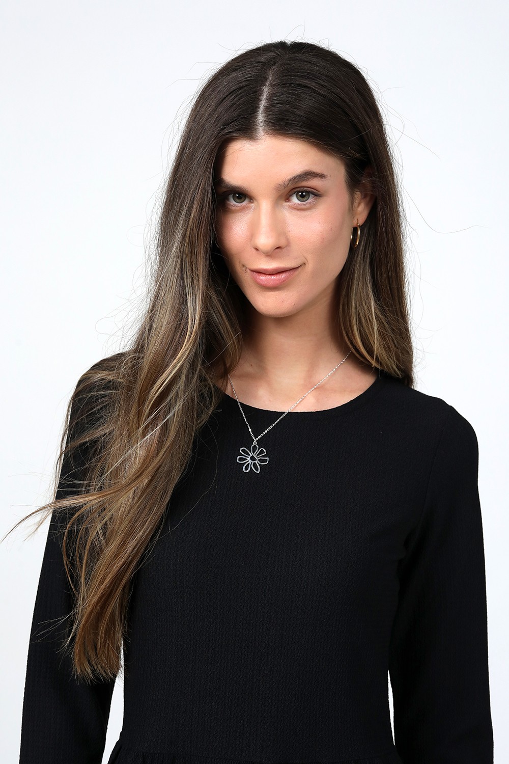 שמלת בייסיק עם שרוול בסיומת כיווץ